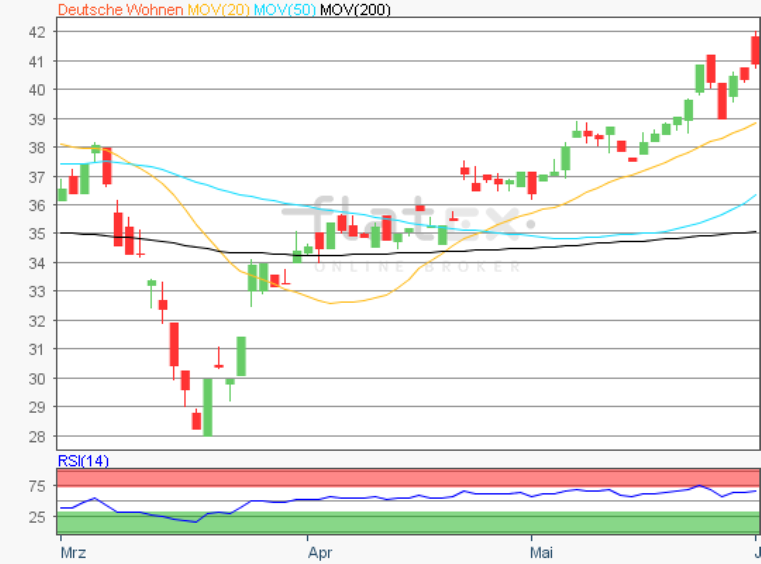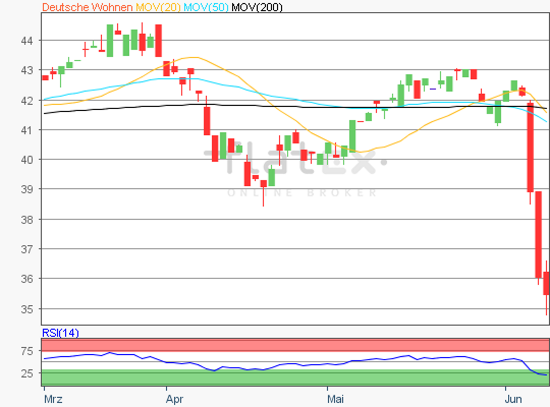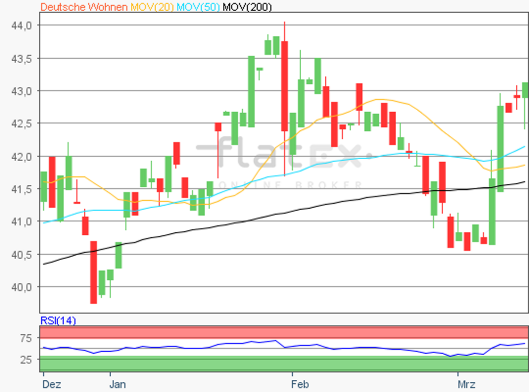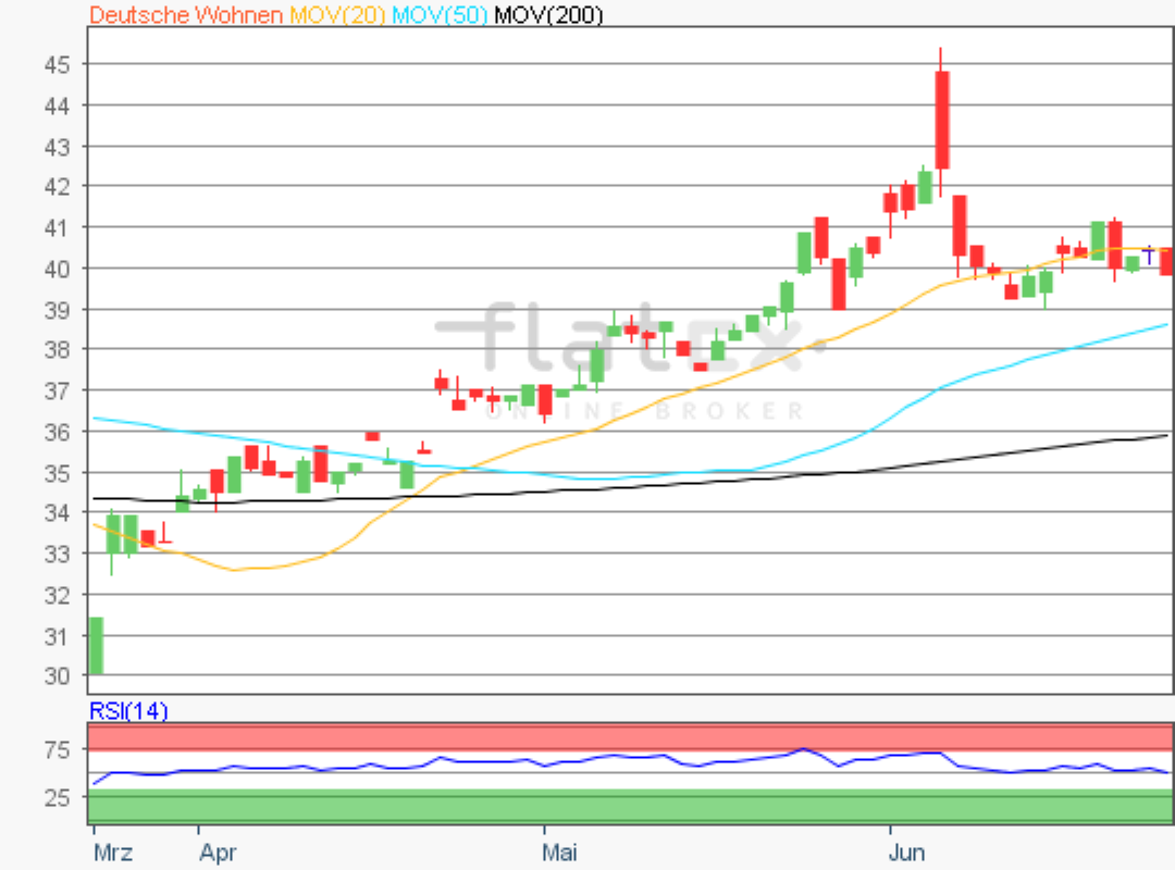Die Aktie des MDAX-Konzerns Deutsche Wohnen notierte am 17. April 2019 auf einem letzten Verlaufstief von 38,43 Euro.