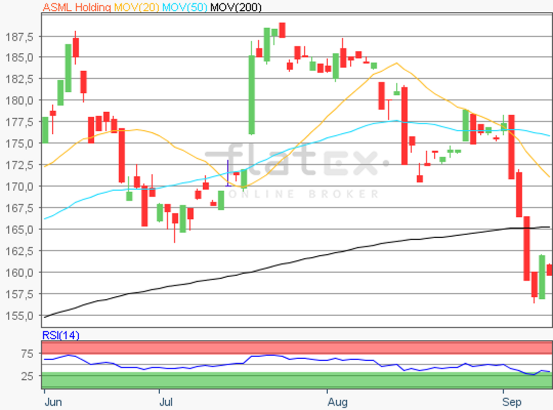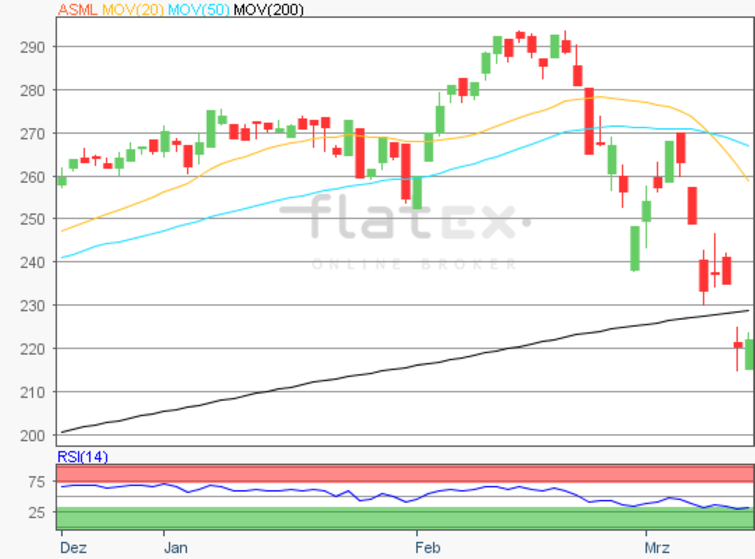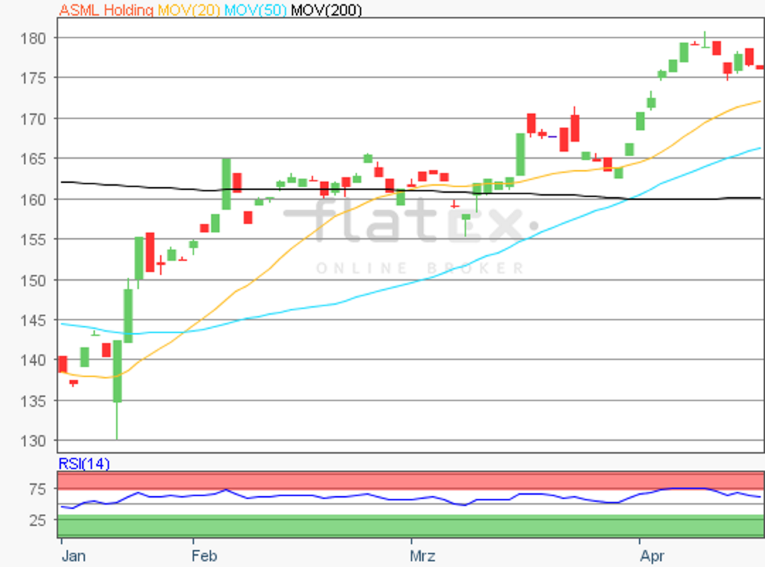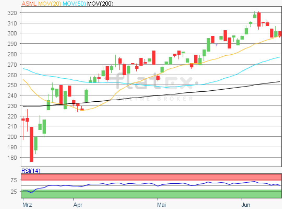 Die Aktie des EuroStoxx50-Konzerns ASML notierte am 04. Juli 2018 auf einem Verlaufstief von 163,16 Euro.