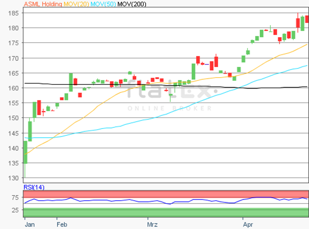 Die Aktie des EuroStoxx50-Konzerns ASML notierte am 24. Juli 2018 auf einem Hoch von 189,55 Euro.