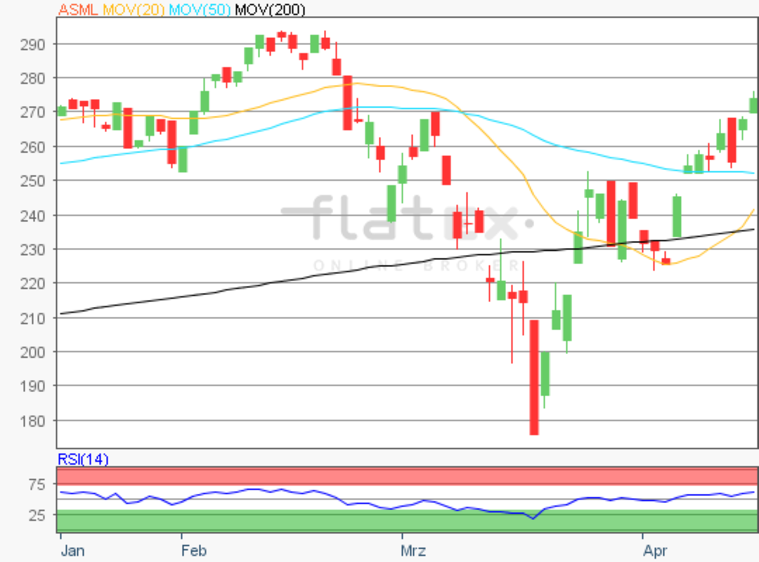Die Aktie des EuroStoxx50-Konzerns ASML notierte am 17. Februar 2020 auf einem Hoch von 294,40 Euro.