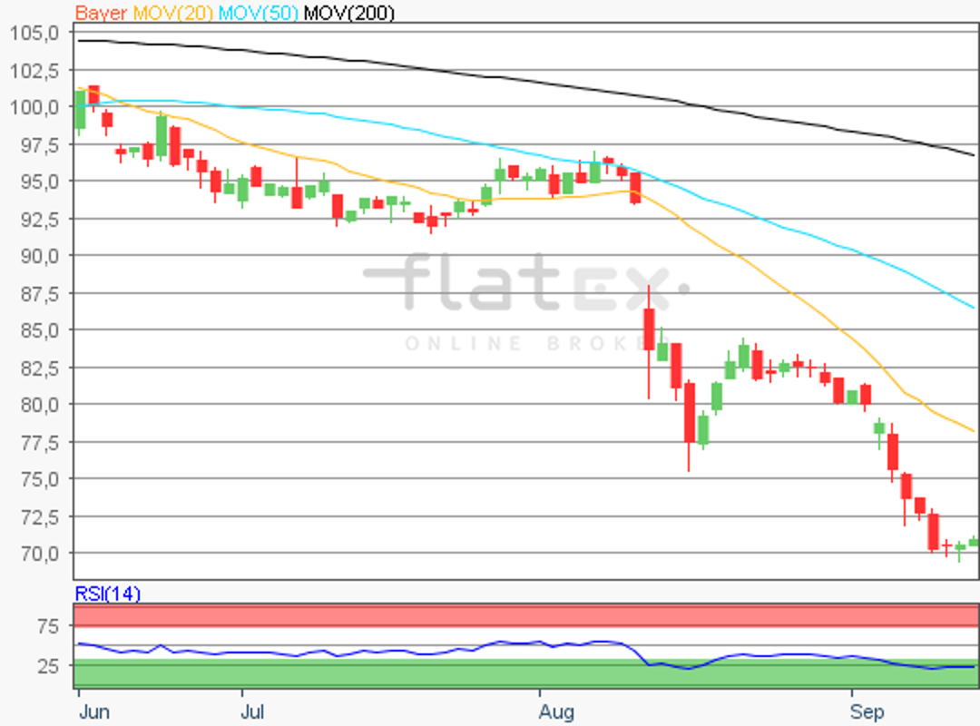 Die Aktie des DAX-Konzerns Bayer notierte am 16. August 2018 auf einem Verlaufstief von 75,50 Euro.