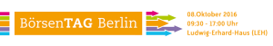 Spannende Vorträge, interessante Aussteller zu allen Facetten der Geldanlage und geballte Finanzkompetenz an einem Ort versammelt – das alles bietet der Börsentag Berlin 2016 am Samstag, den 08. Oktober seinen Besuchern.