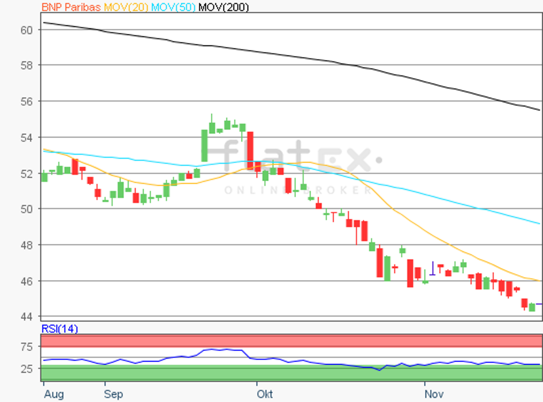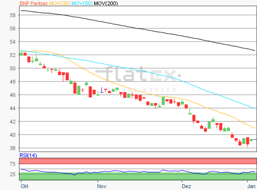 Die Aktie des EuroStoxx50-Konzerns BNP Parisbas notierte am 11. Dezember 2018 auf einem Verlaufstief von 40,29 Euro.