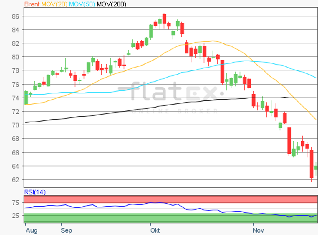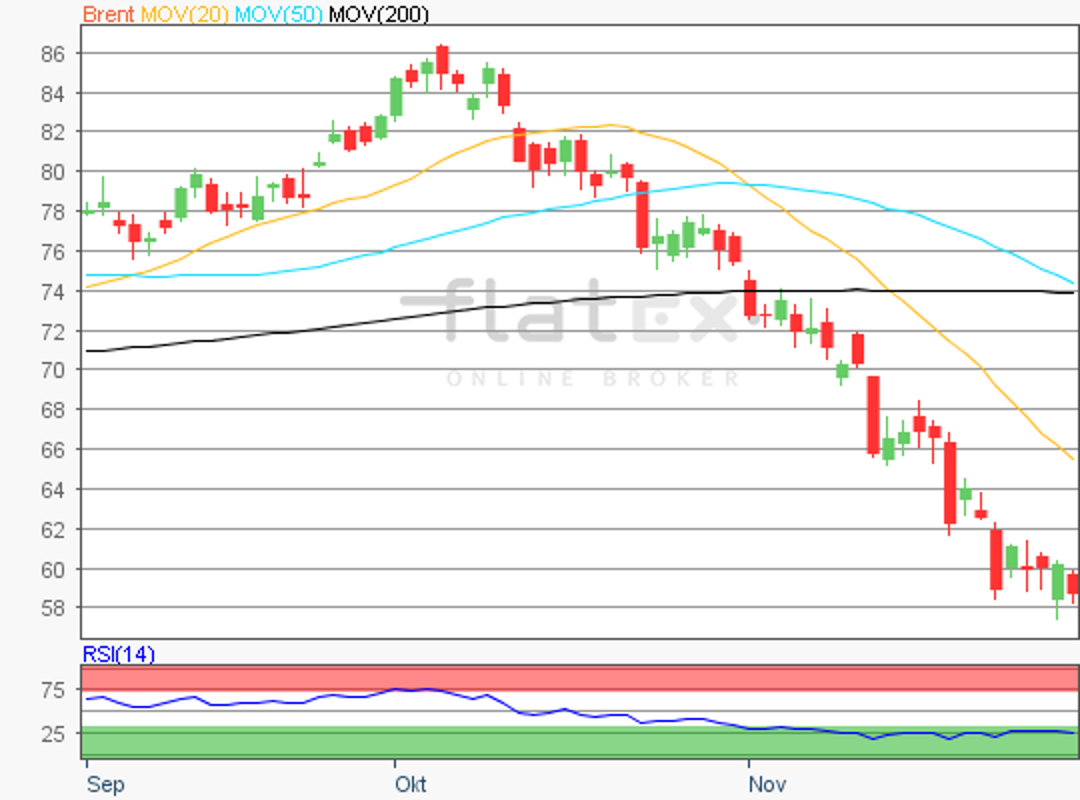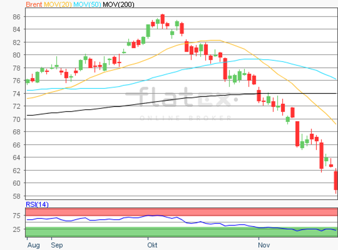 Der nun mit den höchsten Handelsvolumen an der ICE gehandelte Brent-Kontrakt Februar 2019 weist auf Tagesbasis gemäß des RSI-Indikators seit Anfang November auf eine technisch überverkaufte charttechnische Situation hin.