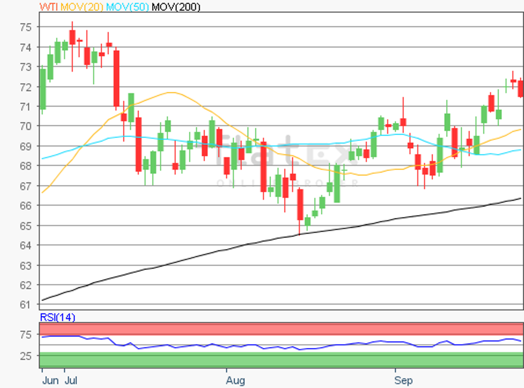 Der Preis für ein Fass Rohöl der US-Sorte WTI (West Texas Intermediate) kann sich stabil oberhalb Marke von 70 US-Dollar halten.