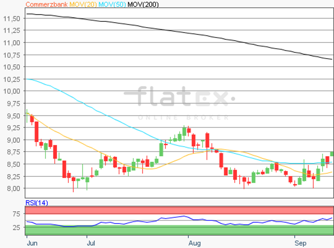 Die Aktie des MDAX-Konzerns Commerzbank notierte am 25. September 2018 auf einem Zwischenhoch von 9,66 Euro.