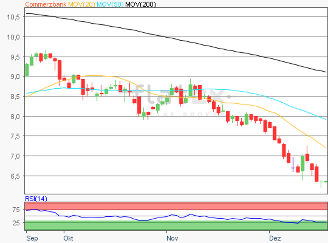 Die Aktie des MDAX-Konzerns Commerzbank notierte am 27. Dezember 2018 auf einem Verlaufstief von 5,50 Euro.