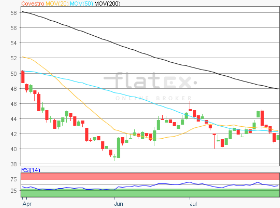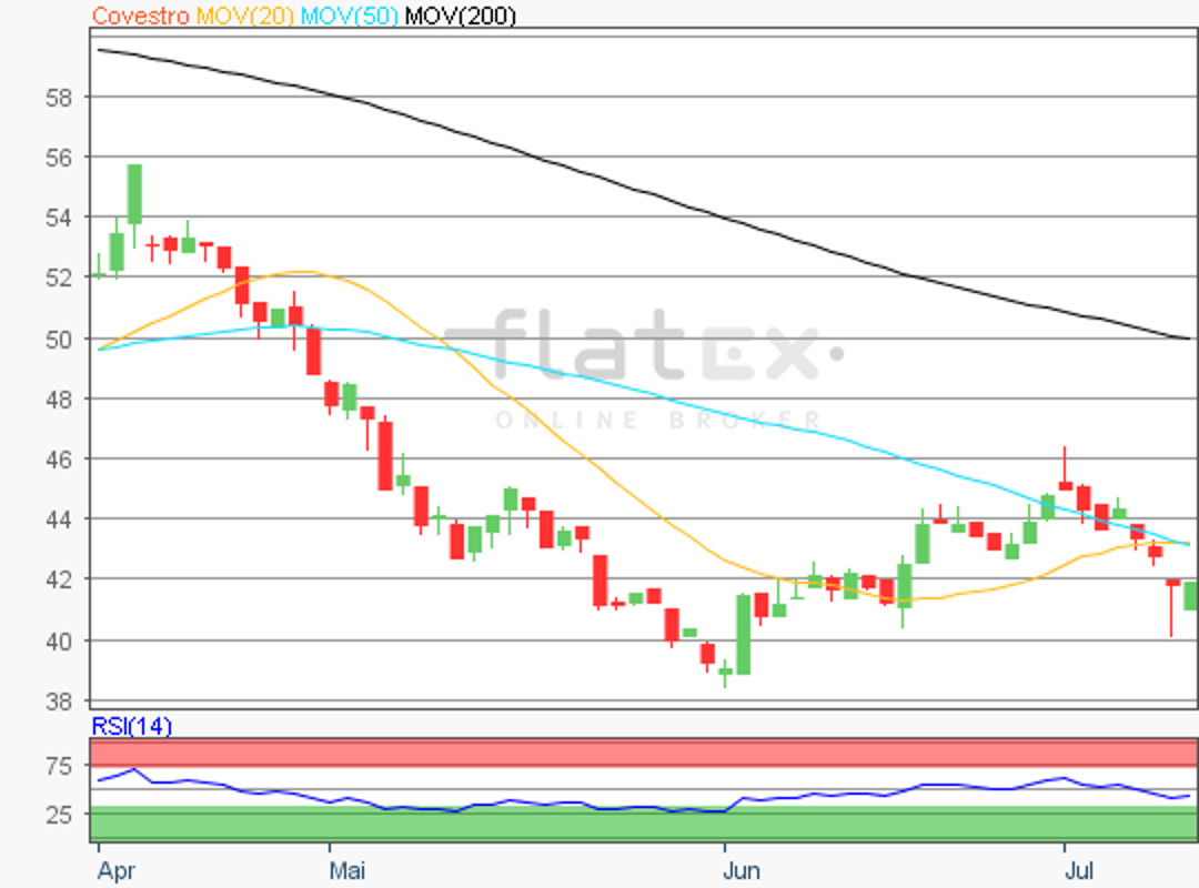 Die Aktie des DAX-Konzerns Covestro notierte am 11. Juli 2019 auf einem jüngsten Verlaufstief von 40,02 Euro.