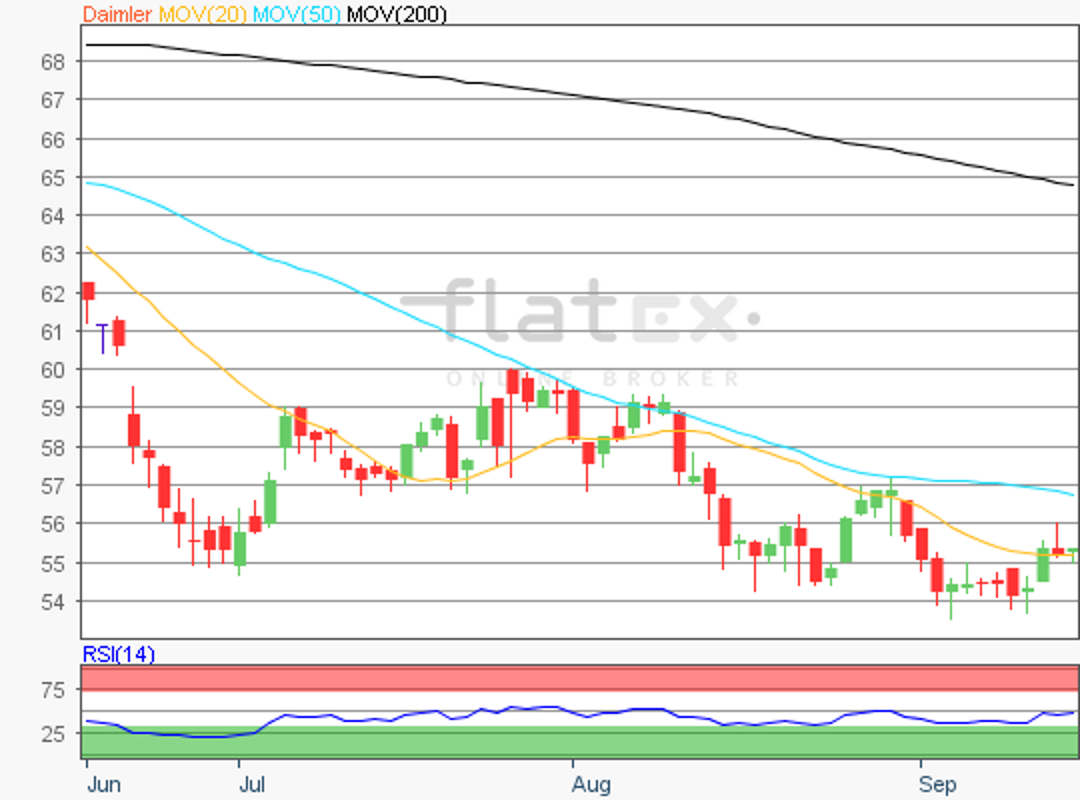 Die Aktie des DAX-Konzerns Daimler notierte am 21. September 2018 mit 58,85 Euro auf einem Zwischenhoch.