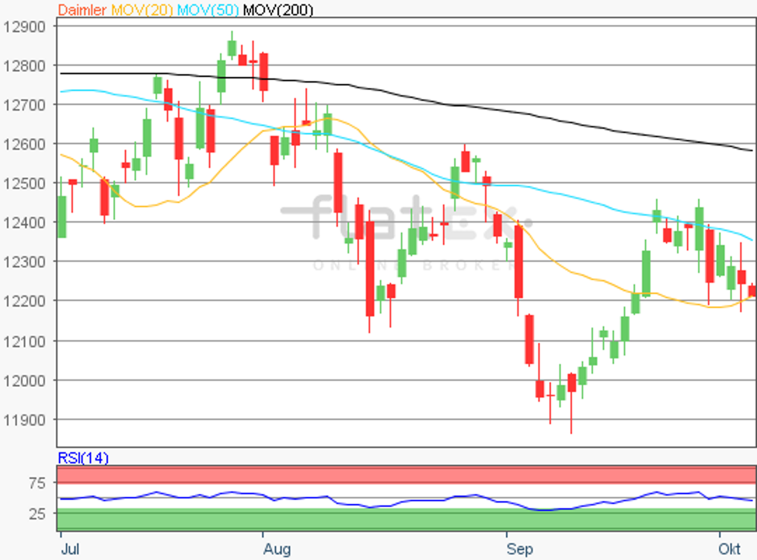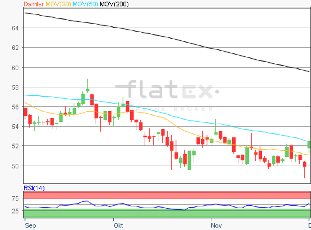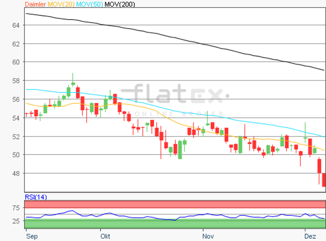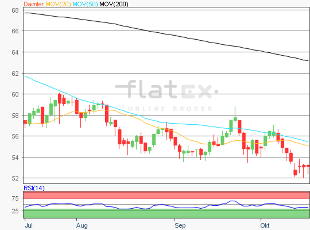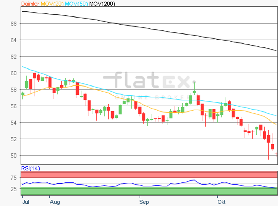 Die Aktie des DAX-Konzerns Daimler notierte am 19. Oktober 2018 mit 48,77 Euro auf einem Verlaufstief.