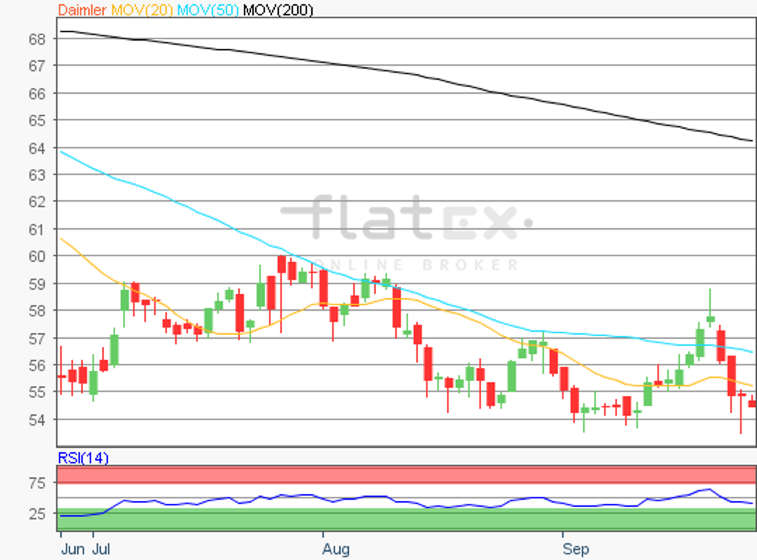 Die Aktie des DAX-Konzerns Daimler notierte am 02. Juli 2018 mit 54,75 Euro auf einem Verlaufstief.