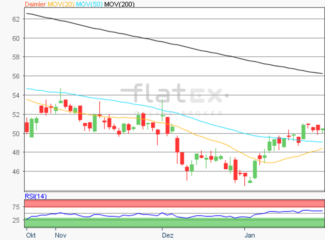 Die Aktie des DAX-Konzerns Daimler notierte am 24. Januar 2018 mit 76,48 Euro auf einem Hoch.