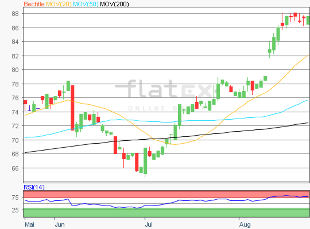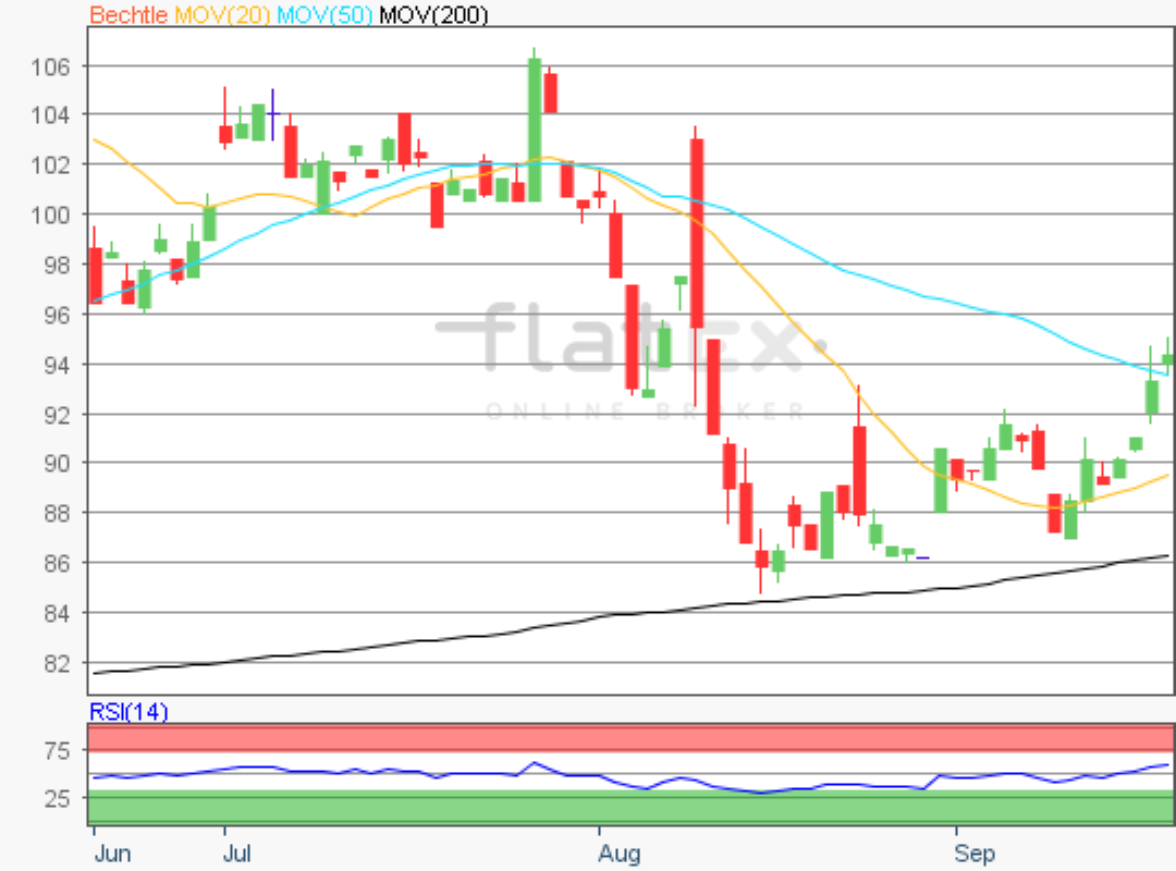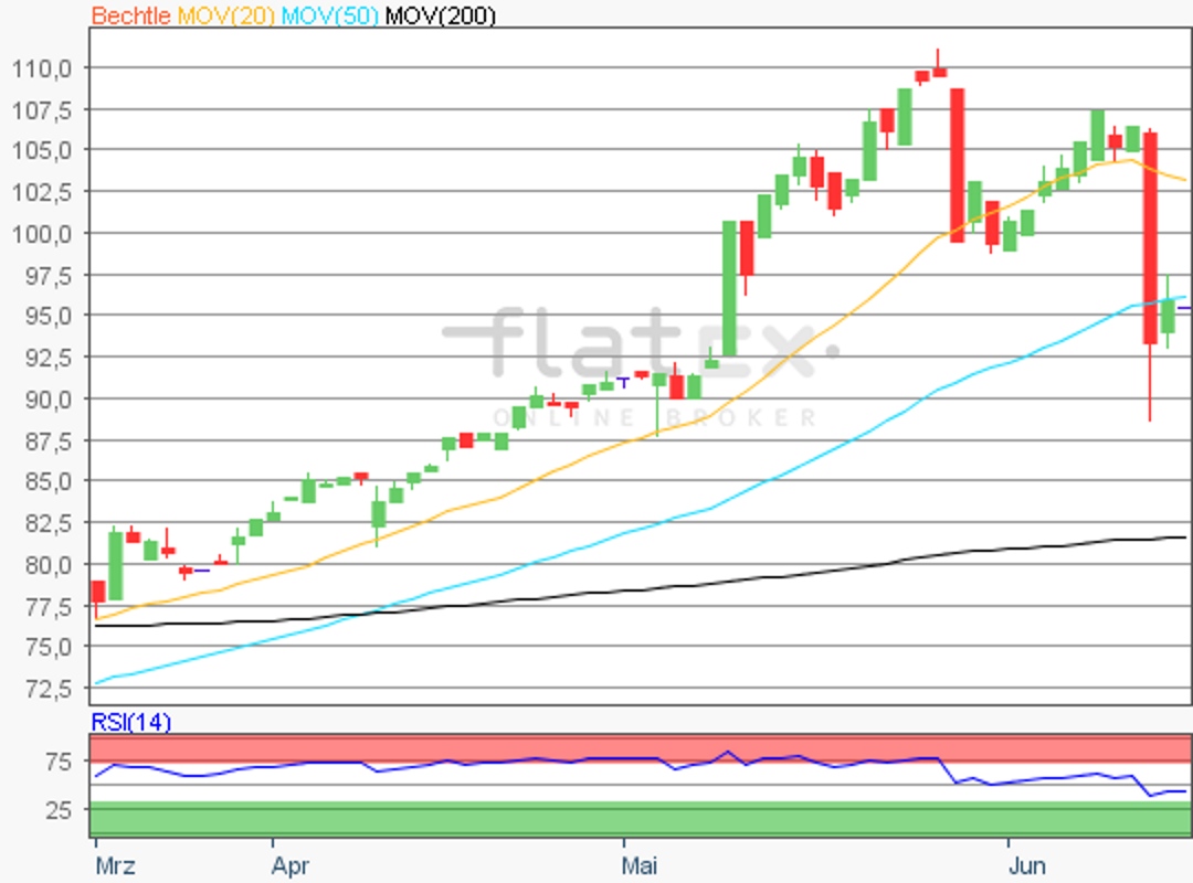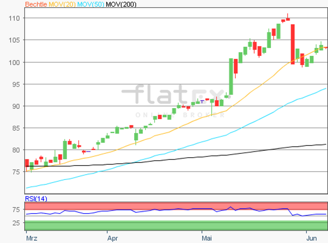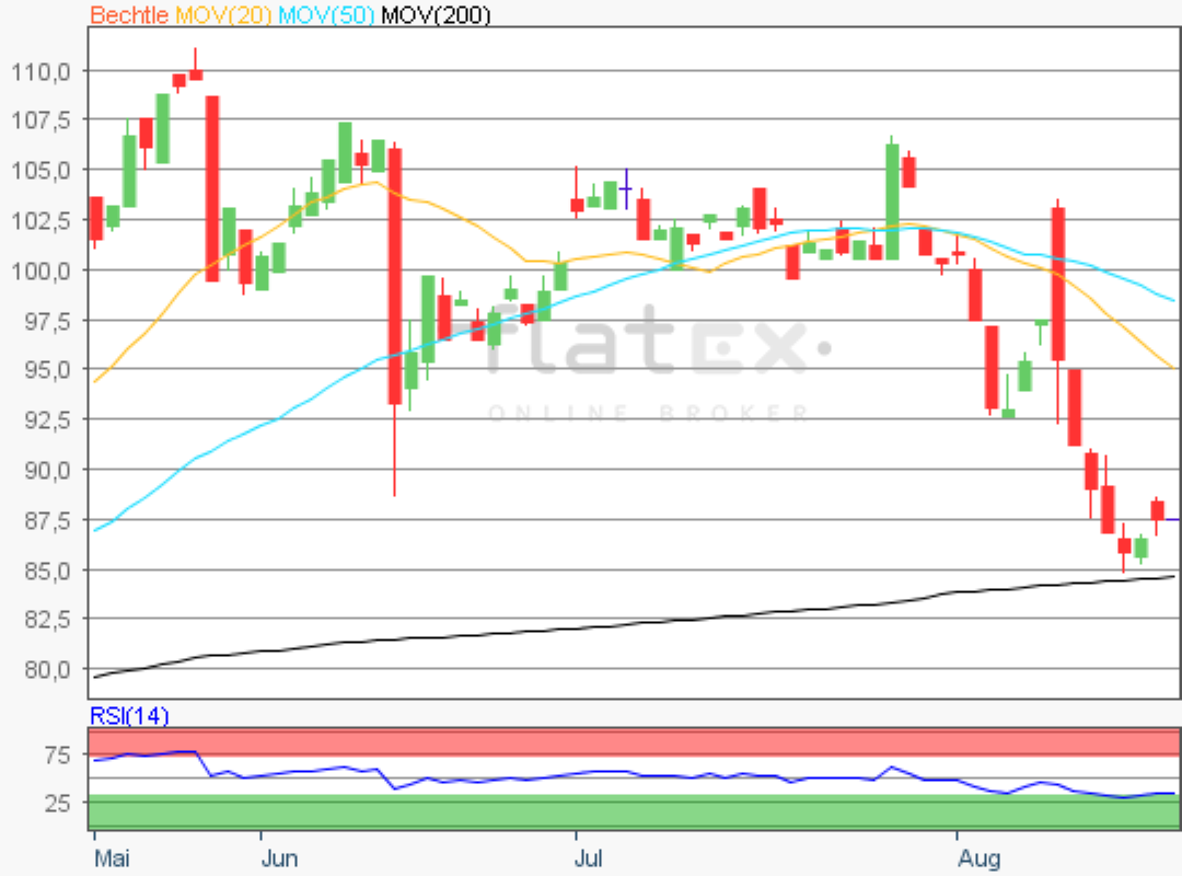 Die Aktie des TecDAX-Konzerns Bechtle notierte am 02. Juli 2018 auf einem Verlaufstief von 65,10 Euro.