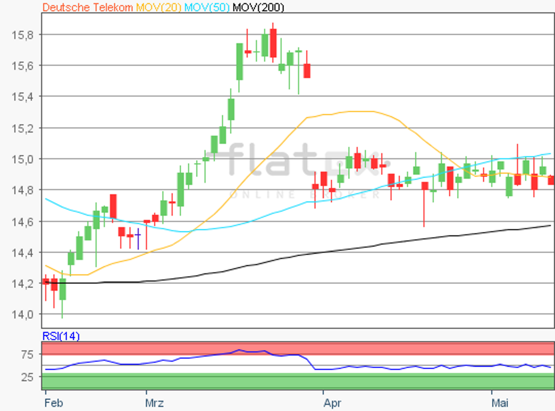 In einer Seitwärtsbewegung befindet sich seit Anfang April die Aktie der Deutschen Telekom.