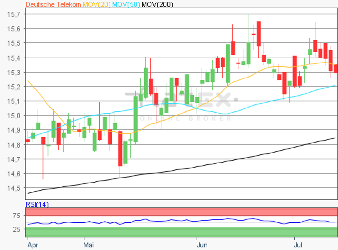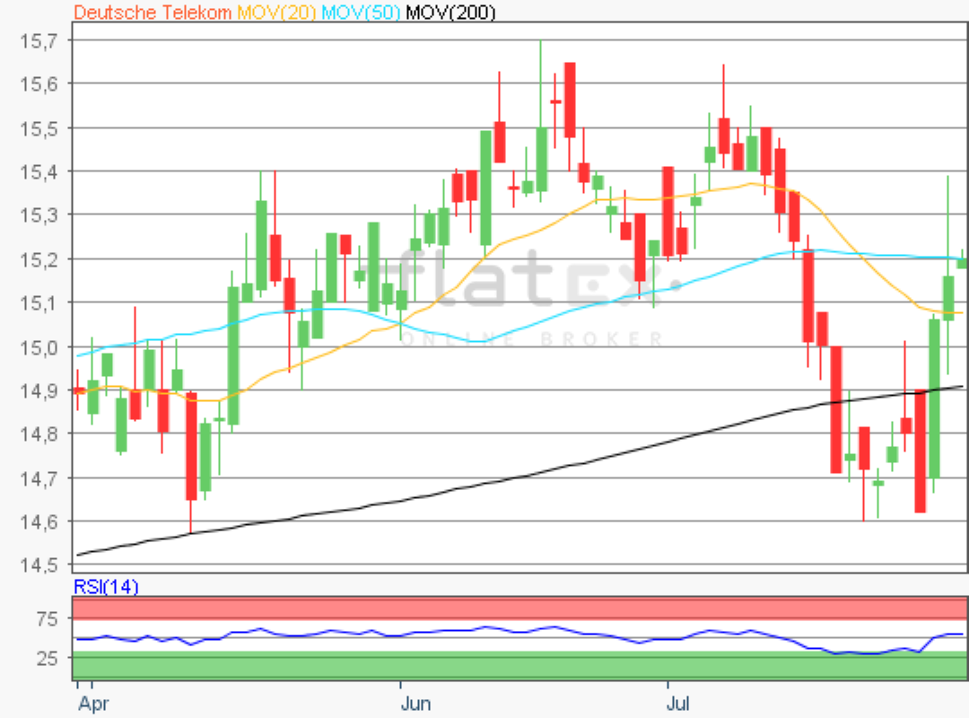 Die Aktie des DAX-Konzerns Deutsche Telekom notierte am 09. August 2019 auf einem letzten Verlaufstief von 14,37 Euro.