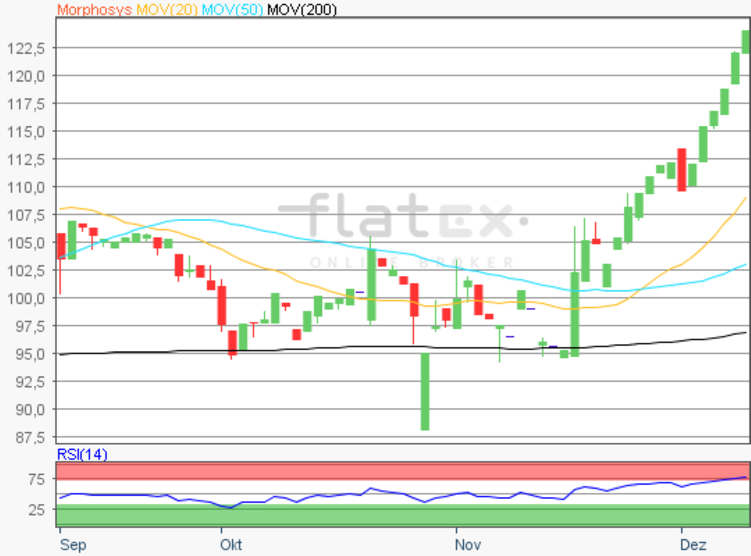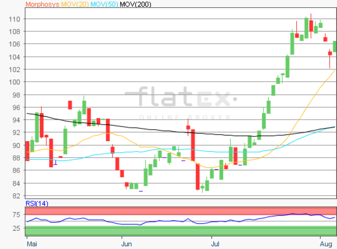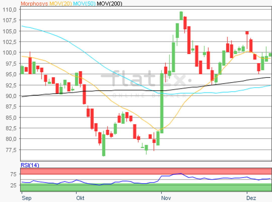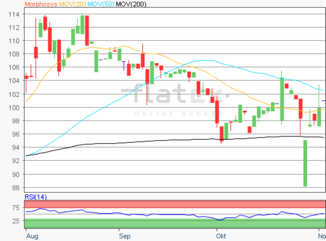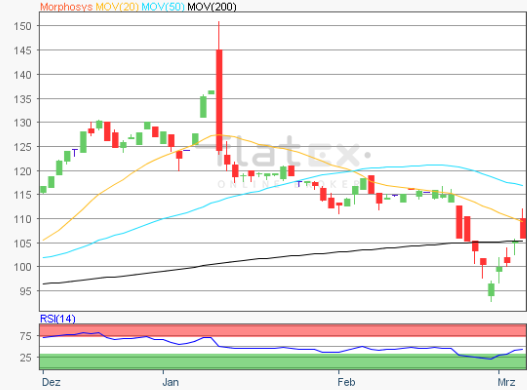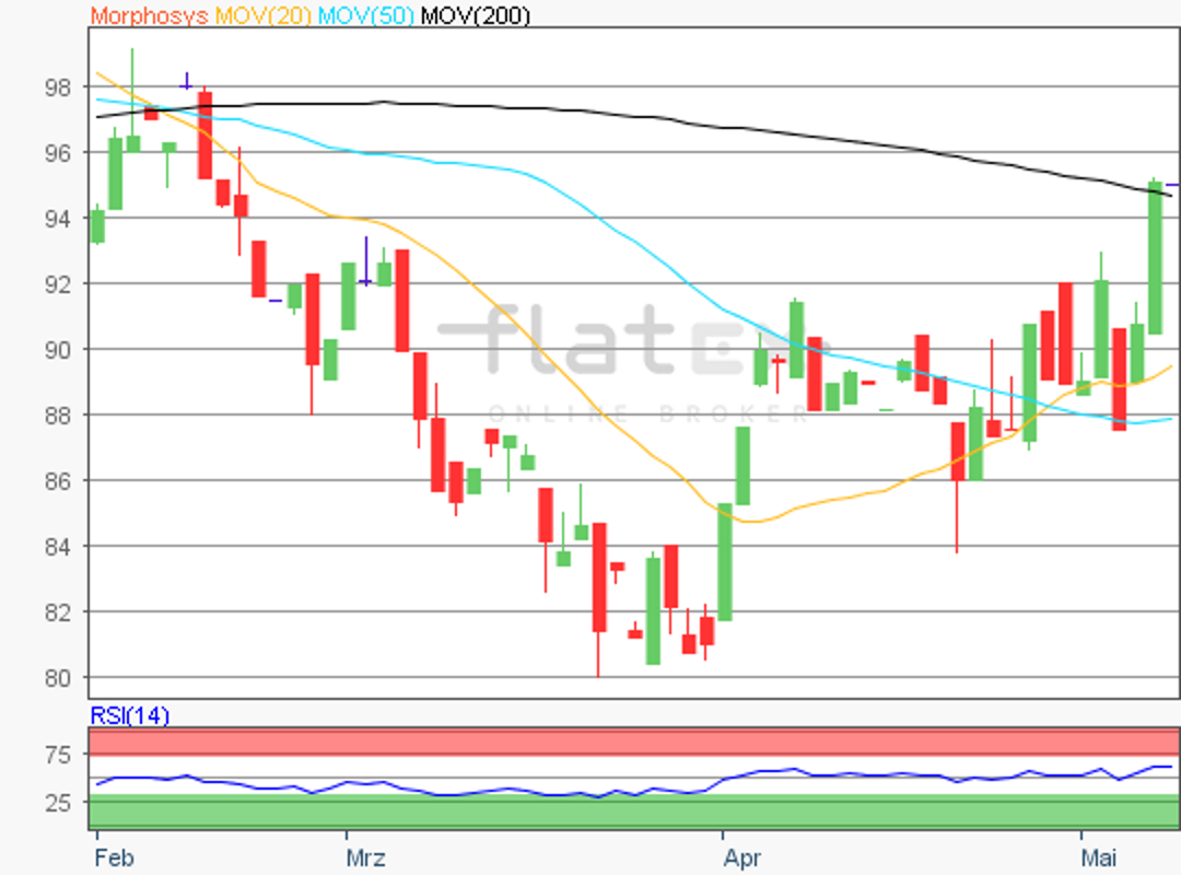Mit einem deutlichen Kursplus von 5,41 Prozent schloss gestern das Papier von MorphoSys bei 95,40 Euro.
