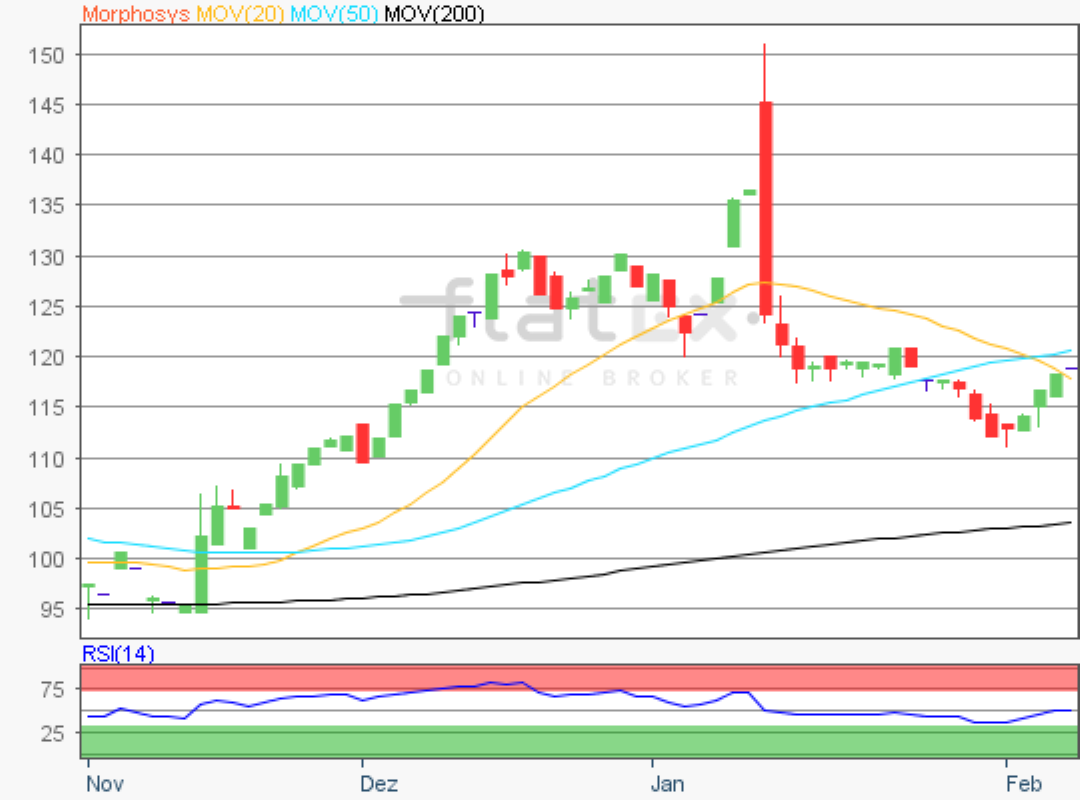 Die Aktie des TecDAX-Konzerns Morphosys notierte am 03. Februar 2020 auf einem letzten hier relevanten Verlaufstief von 110,50 Euro.