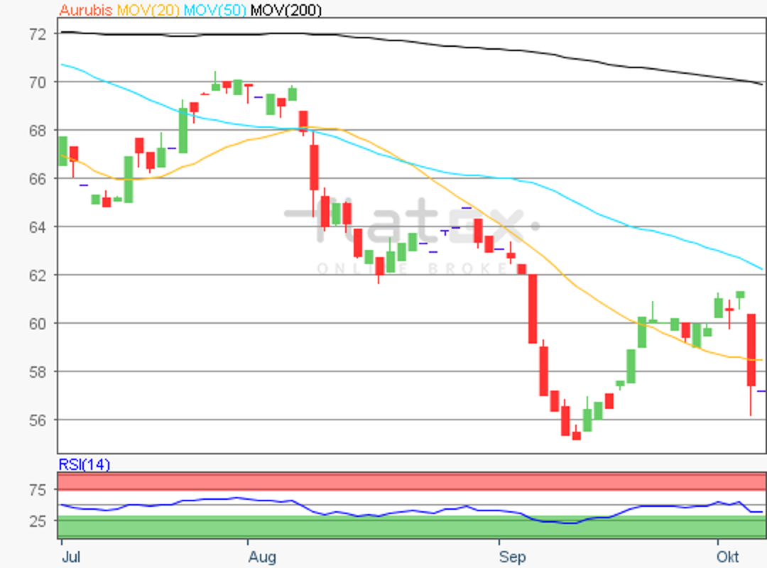 Die Aktie des MDAX-Konzerns Aurubis notierte am 17. August 2018 auf einem Verlaufstief von 61,46 Euro.