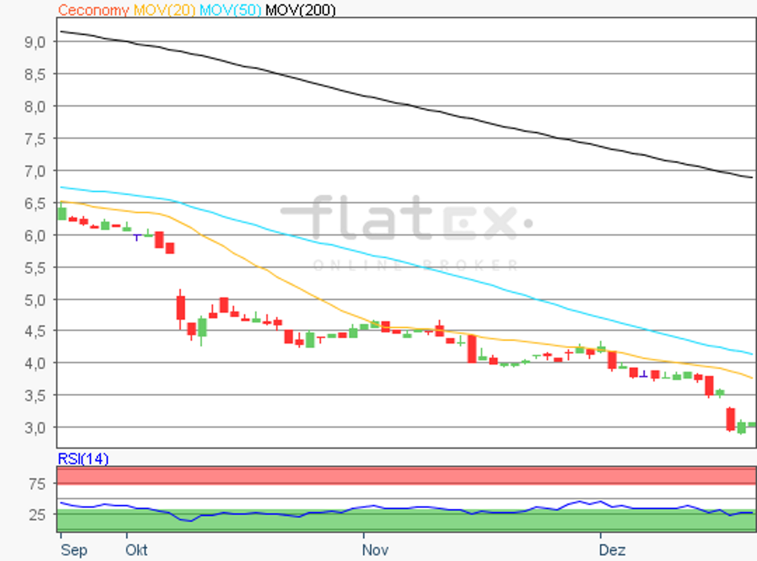 Die Aktie des MDAX-Konzerns Ceconomy notierte am 02. Januar 2019 mit 2,92 Euro auf einem Verlaufstief.