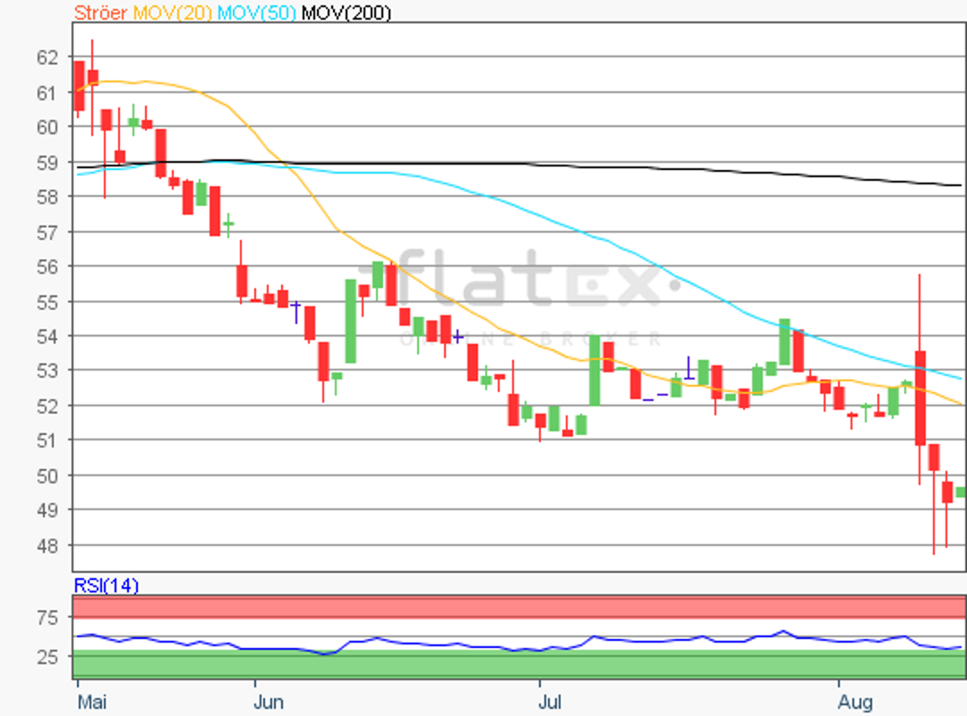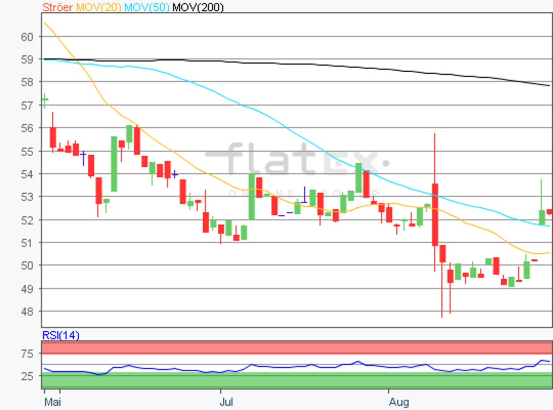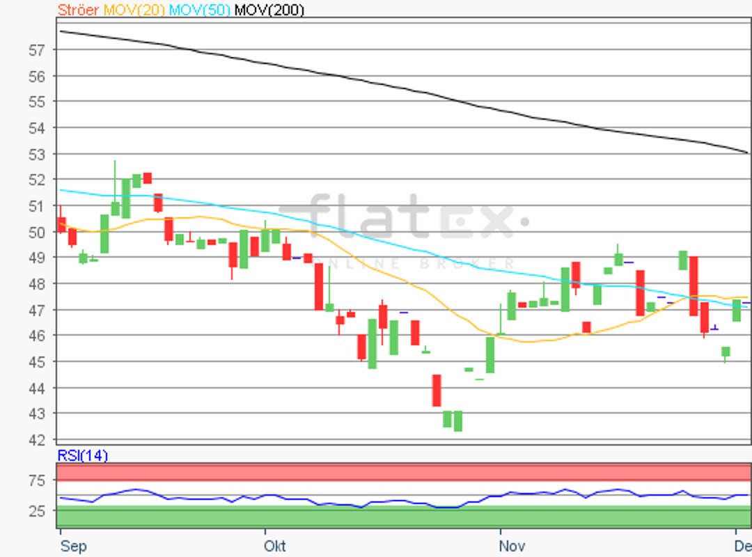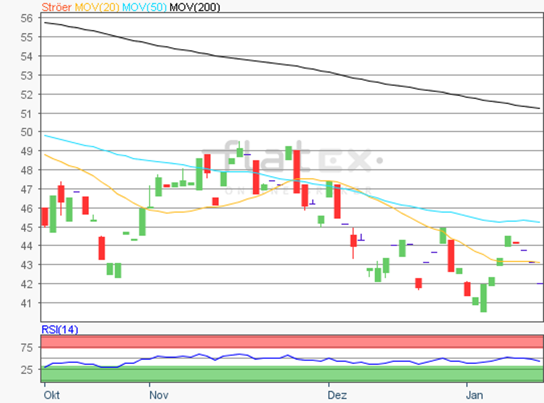 Die Aktie des SDAX-Konzerns Ströer notierte am 25. Oktober 2018 bei 42,46 Euro auf einem Verlaufstief.