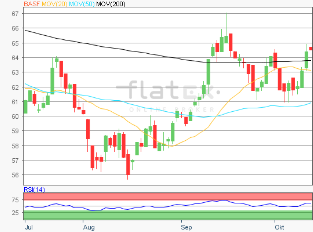 Die Aktie des DAX-Konzerns BASF notierte am 07. November 2019 auf einem Zwischenhoch von 72,17 Euro.