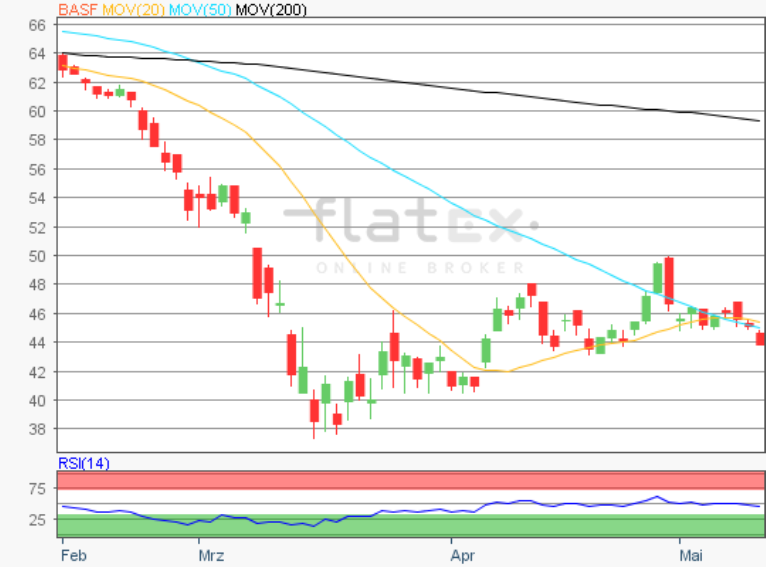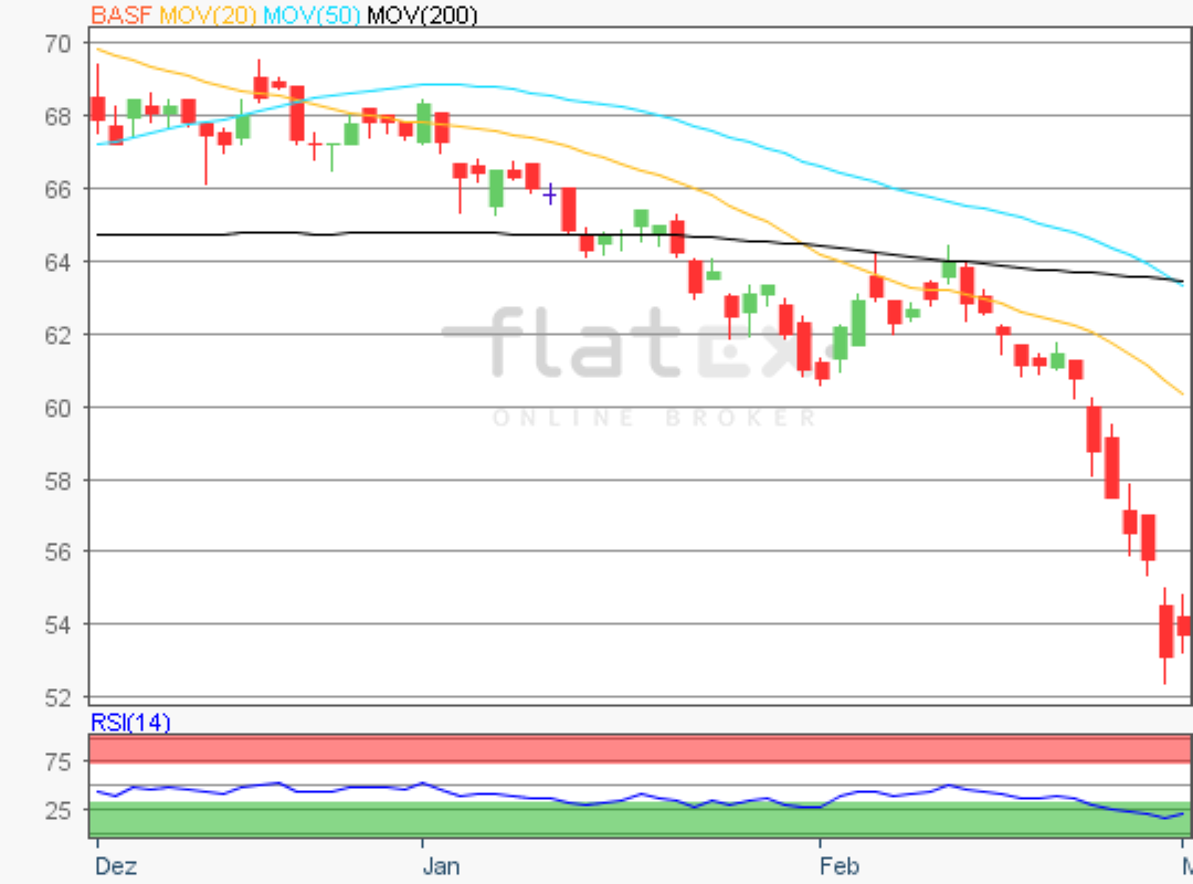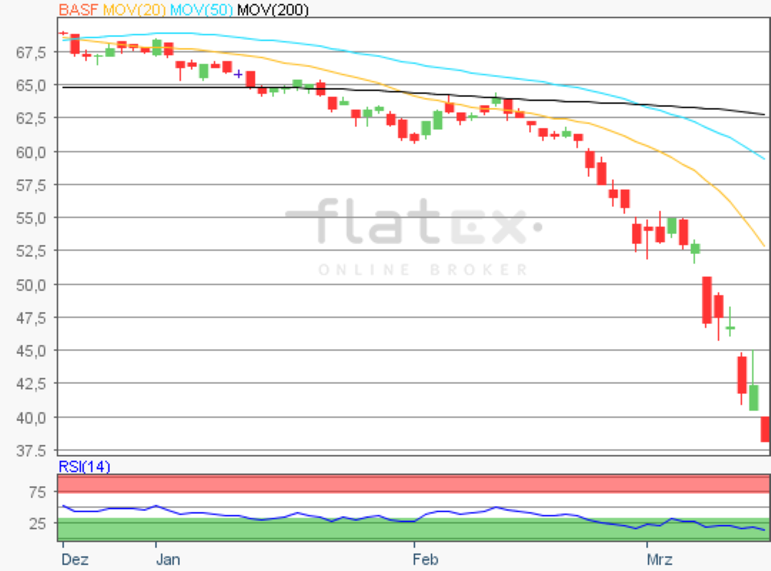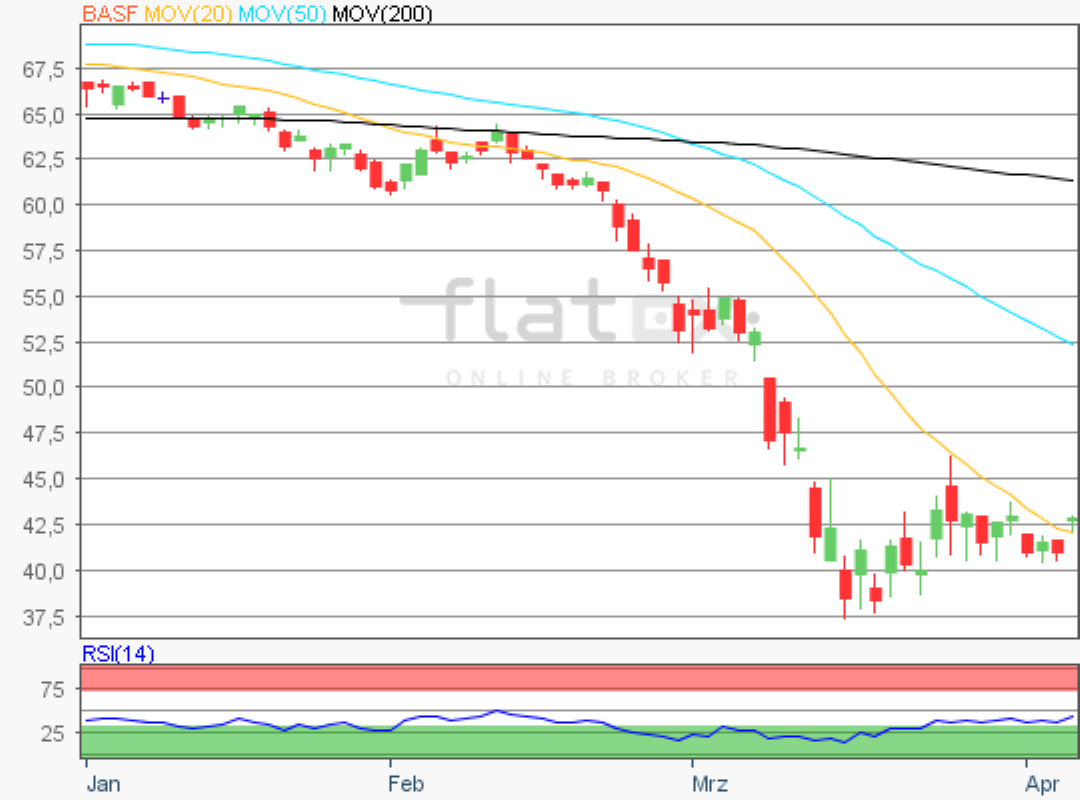 Die Aktie des DAX-Konzerns BASF notierte am 16. März 2020 auf einem letzten Verlaufstief von 37,35 Euro.