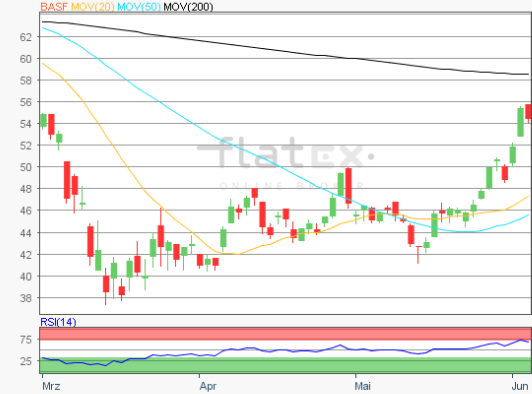 Die Aktie des DAX-Konzerns BASF notierte am 03. Februar 2020 auf einem letzten hier relevanten Verlaufstief von 60,56 Euro.