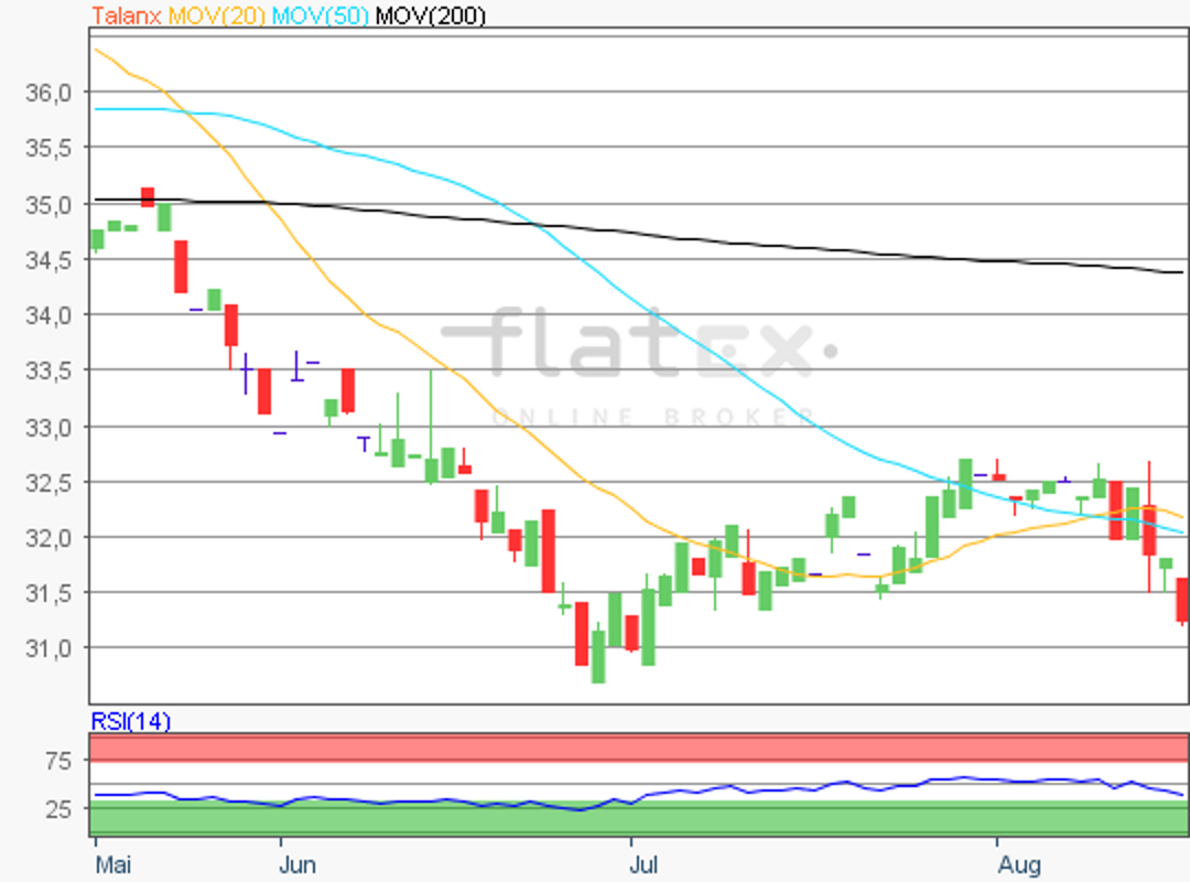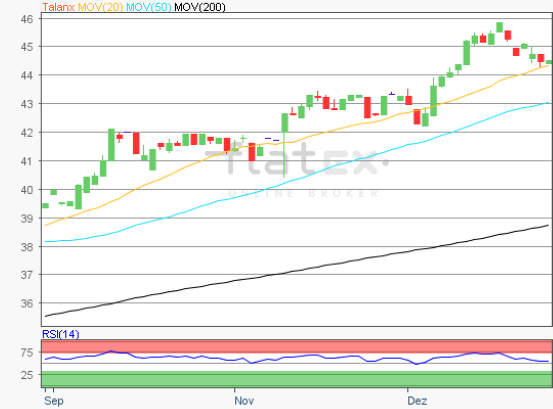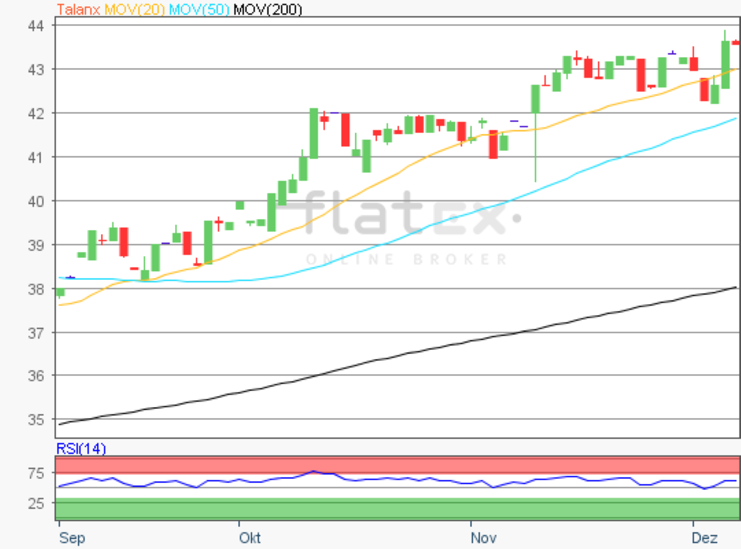 Die Aktie des MDAX-Konzerns Talanx notierte am 27. Dezember 2018 auf einem übergeordneten Verlaufstief von 28,76 Euro.