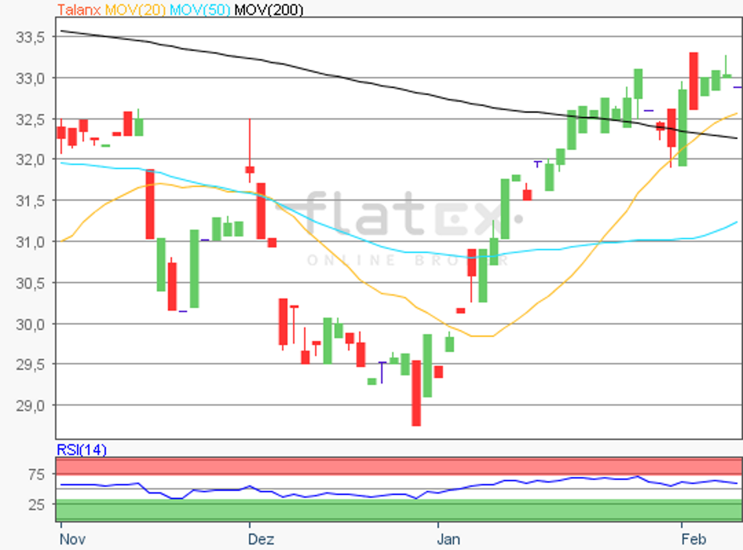 Die Aktie des SDAX-Konzerns Talanx notierte am 19. Februar 2020 auf einem letzten Zwischenhoch von 48,68 Euro.