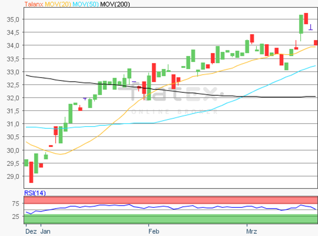 Die Aktie des MDAX-Konzerns Talanx bildete am 02. Mai 2018 bei 37,66 Euro ein Jahreshoch aus.