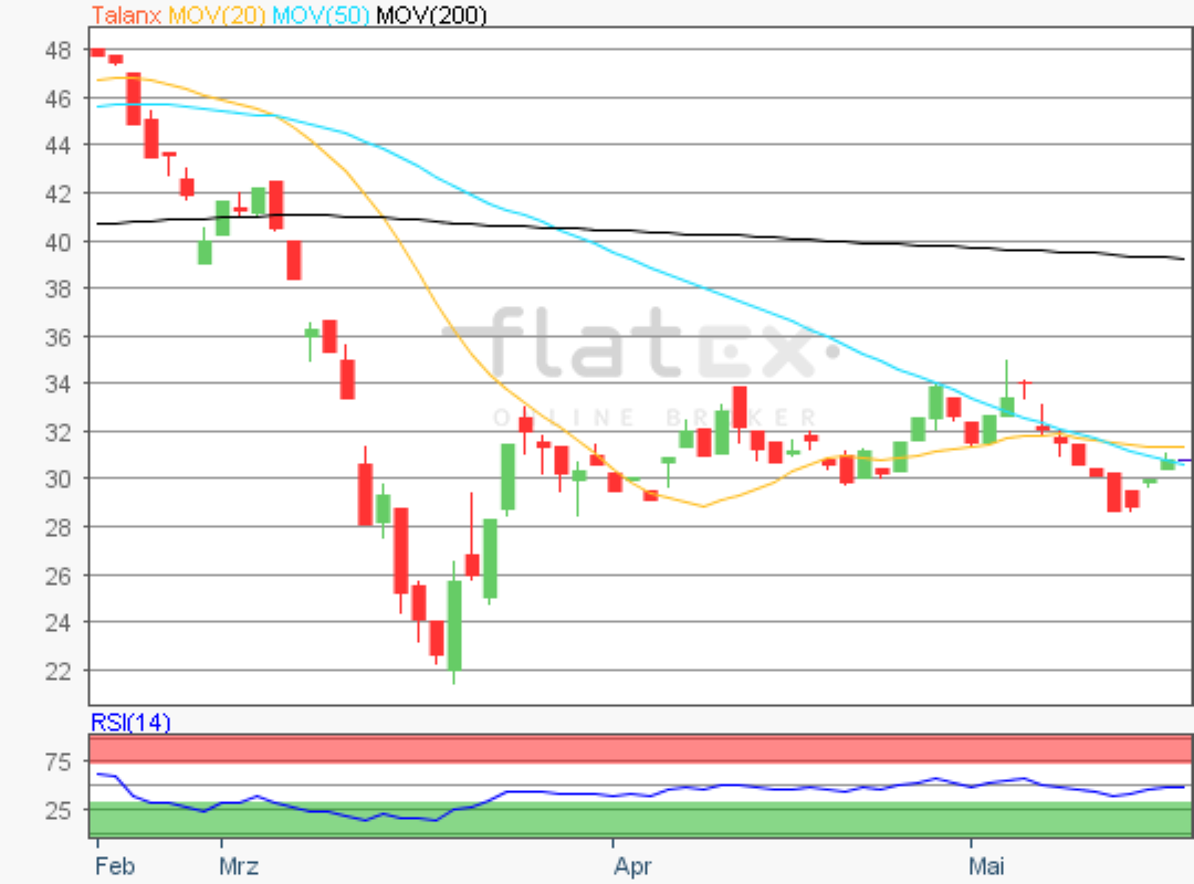 Die Aktie des MDAX-Konzerns Talanx notierte am 02. Mai 2018 auf einem hier relevanten Zwischenhoch von 37,66 Euro.