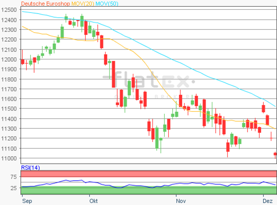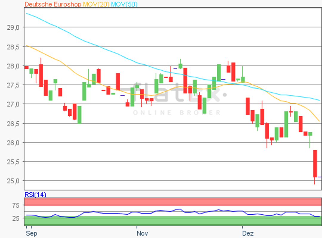 Die Aktie des MDAX-Konzerns Deutsche Euroshop notierte am 11. Dezember 2018 bei 25,84 Euro auf einem letzten Zwischentief.