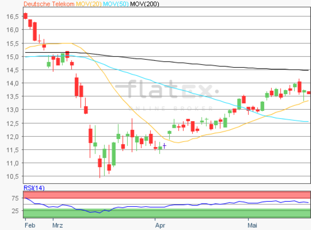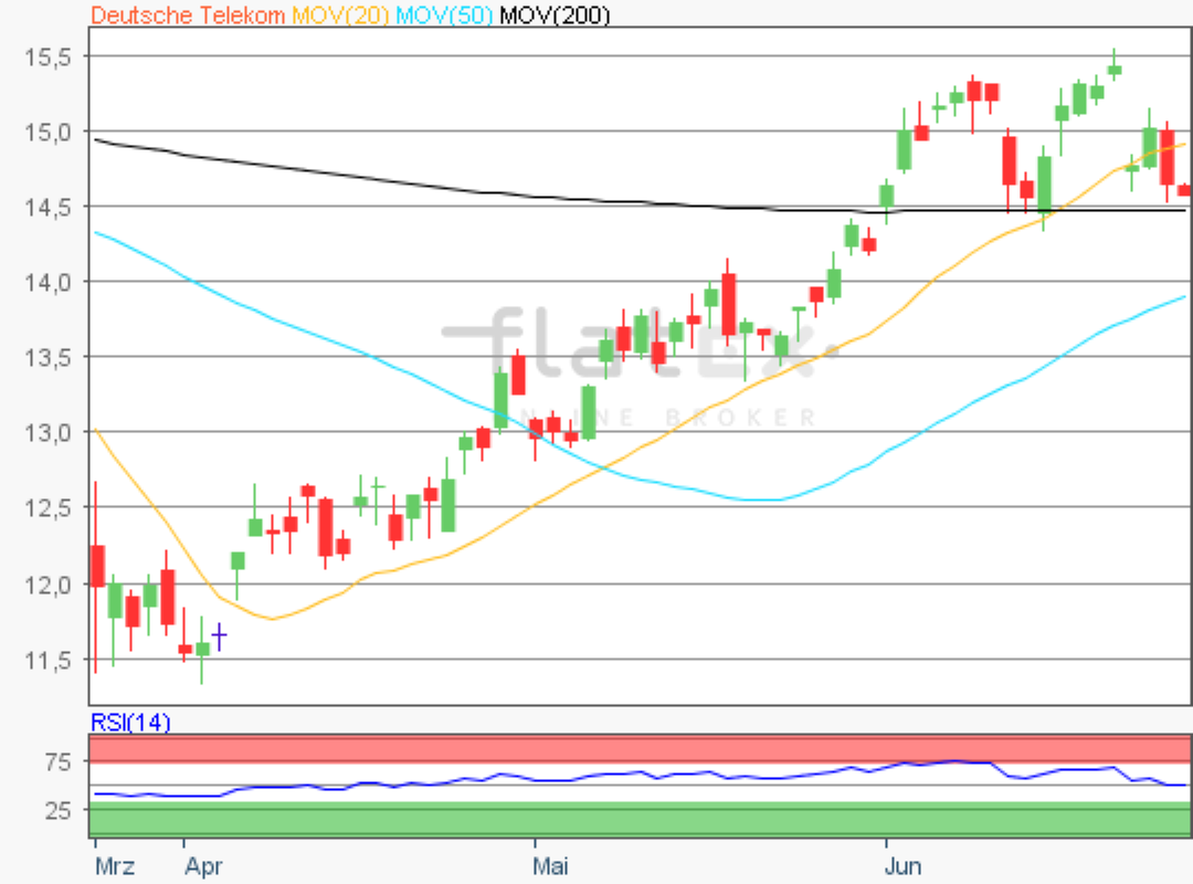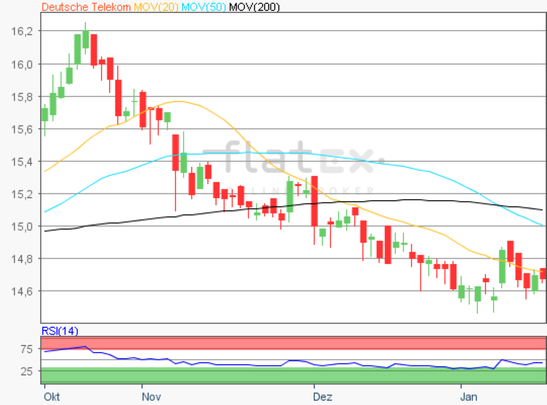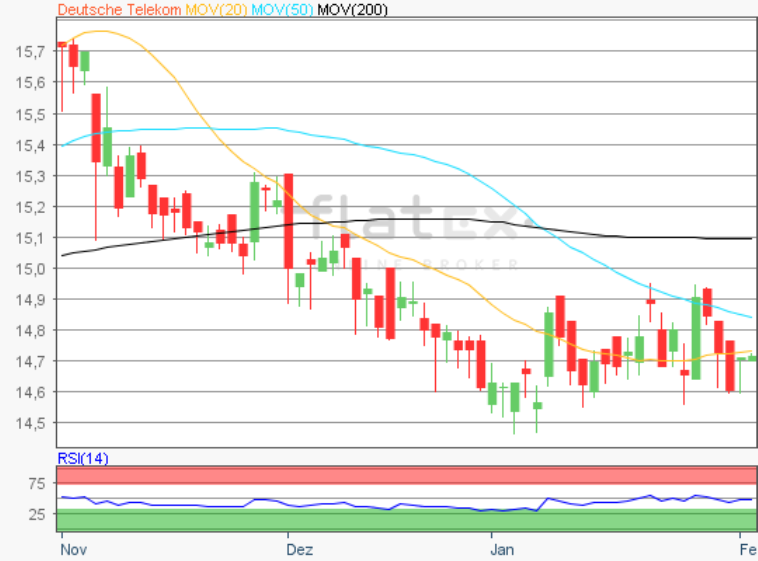 Die Aktie des DAX-Konzerns Deutsche Telekom notierte am 03. Februar 2020 auf einem letzten Verlaufstief von 14,41 Euro.