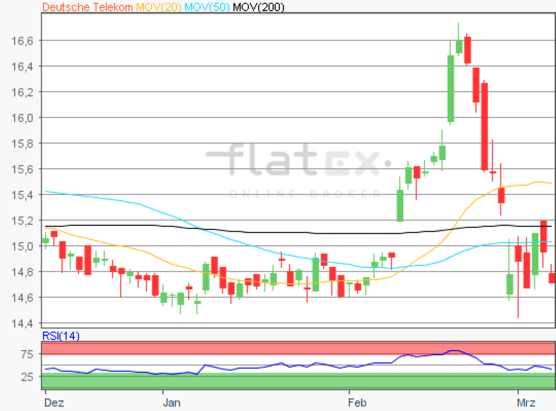 Die Aktie des DAX-Konzerns Deutsche Telekom notierte am 05. März 2018 auf einem übergeordneten Verlaufstief von 12,72 Euro.