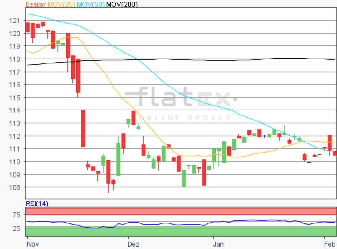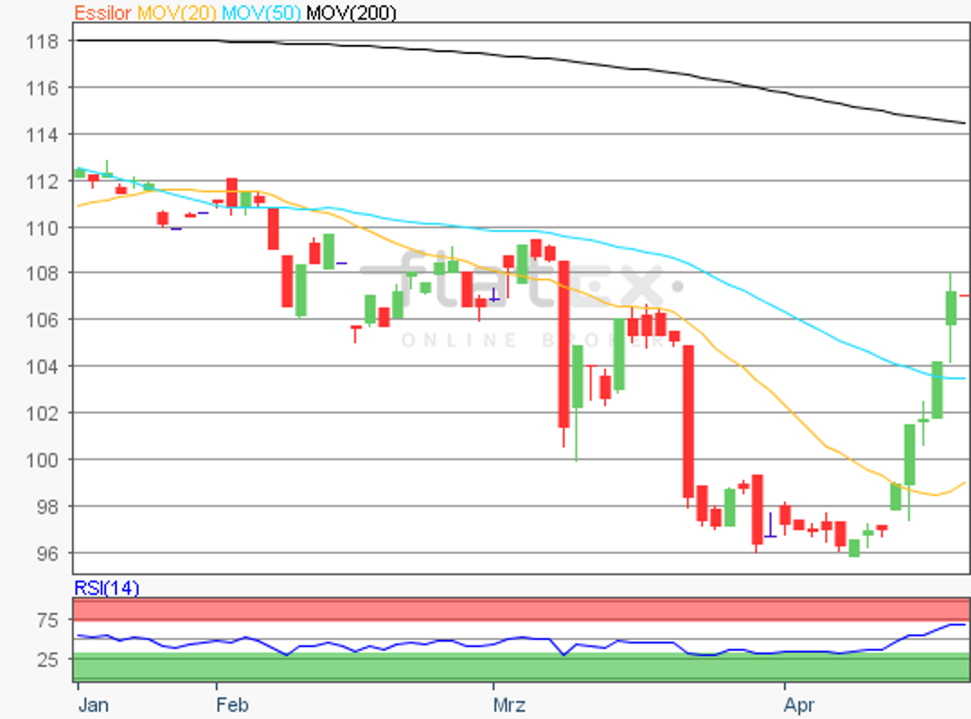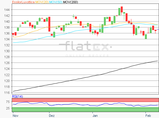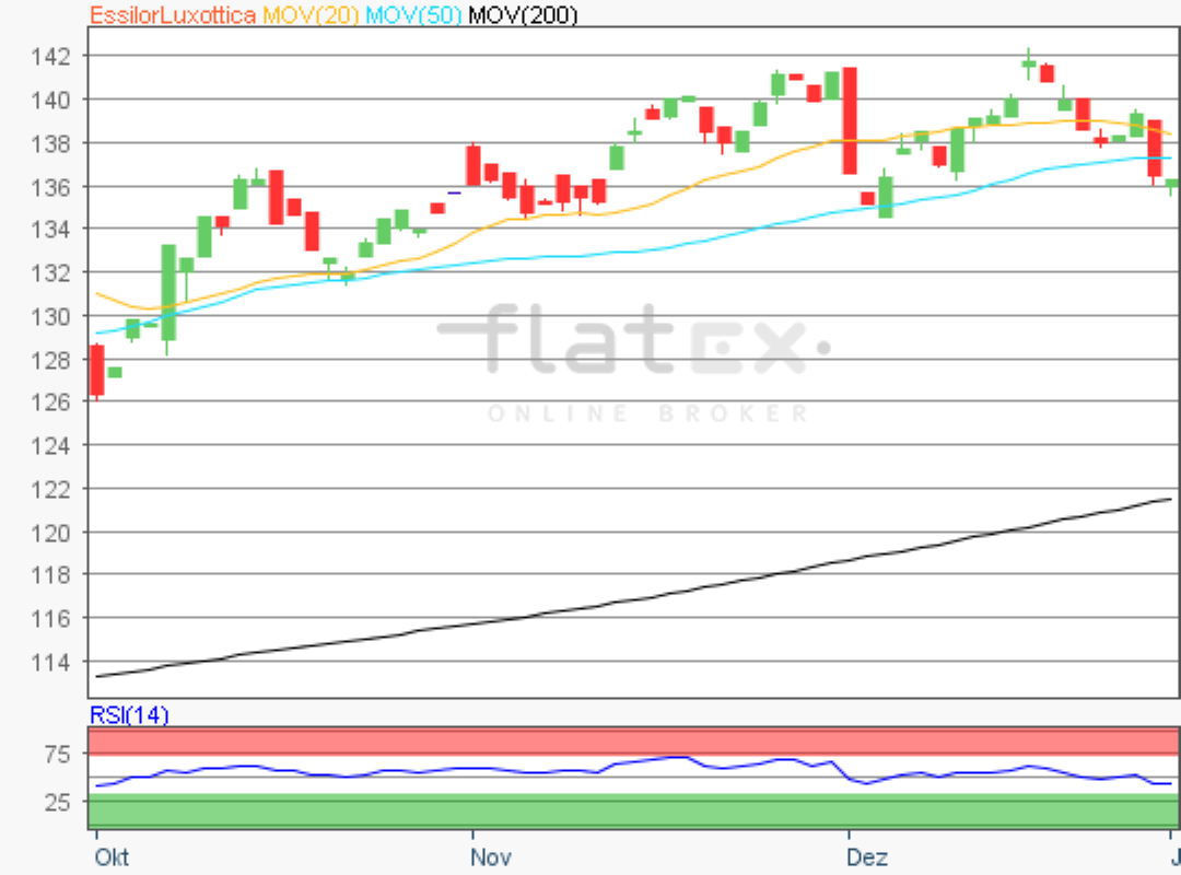 Die Aktie des EuroStoxx50-Konzerns EssilorLuxottica notierte am 20. Januar 2020 auf einem letzten Zwischenhoch von 145,45 Euro.