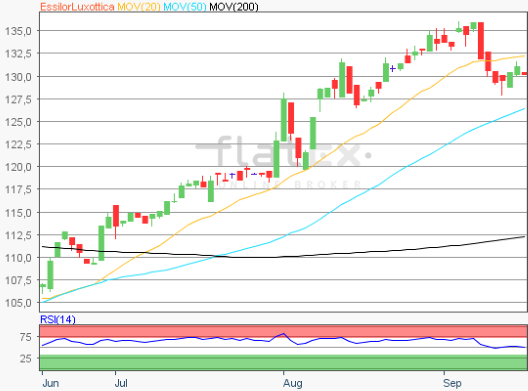 Die Aktie des EuroStoxx50-Konzerns EssilorLuxottica notierte am 04. September 2019 auf einem letzten Zwischenhoch von 136,70 Euro.