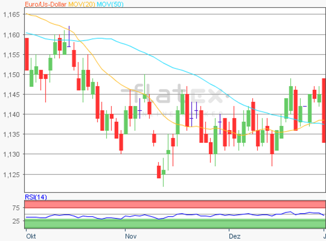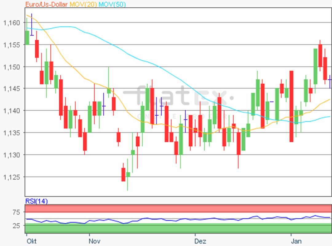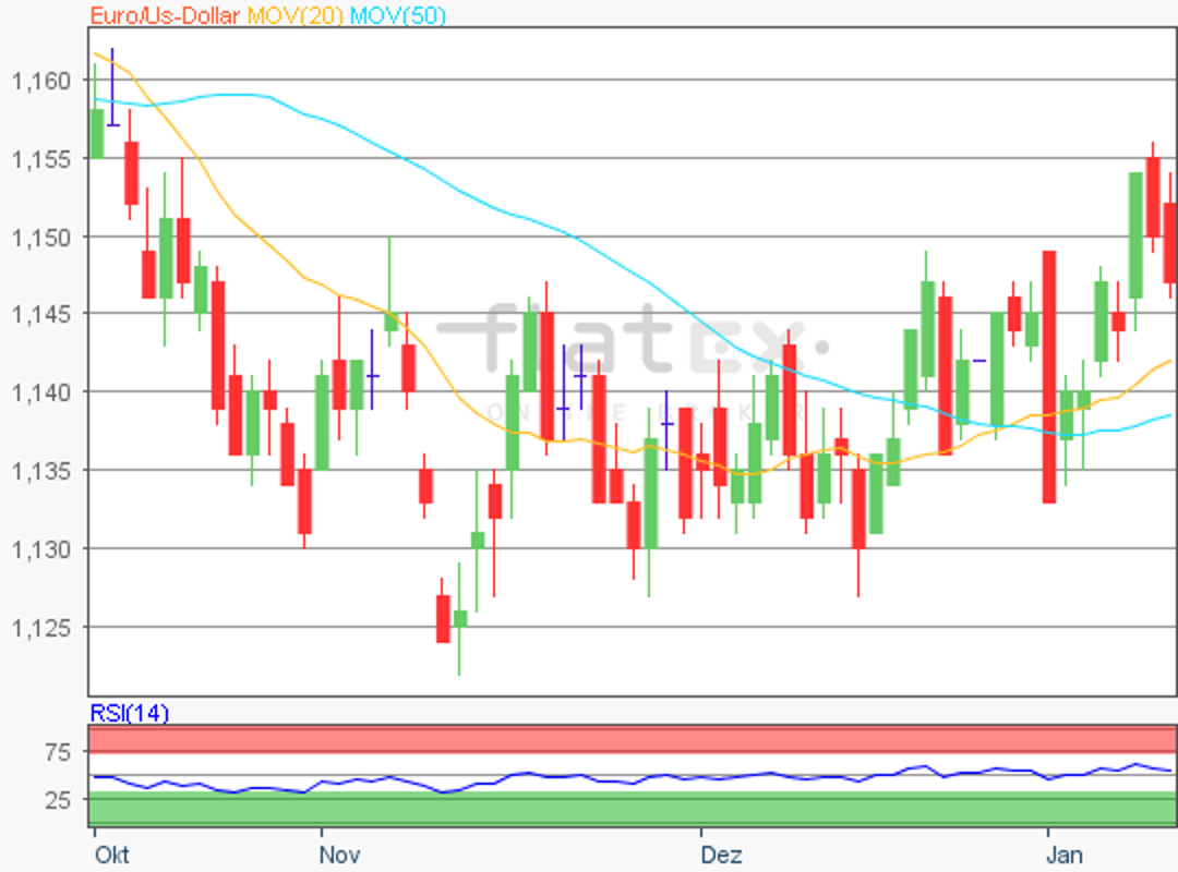 Das Währungspaar EUR/USD prallte wie an einem Kursdeckel an einem hier charttechnisch relevanten Verlaufshoch knapp unterhalb der Marke von 1,15 wieder gen Süden ab.