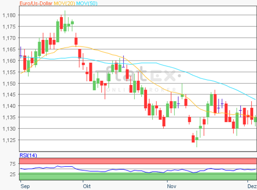 In großen Schritten geht man auch am Devisenmarkt dem Jahresende entgegen. Der Fokus der Marktteilnehmer richtet sich bereits auf den EZB-Zinsentscheid am Donnerstag um 13:45 Uhr und die dazu im Anschluss um 14:30 Uhr stattfindende EZB-Pressekonferenz.