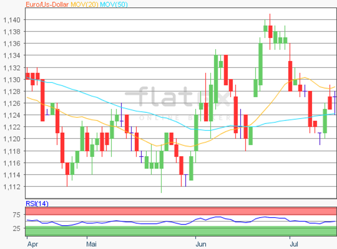 Das Währungspaar EUR/USD konnte sich auch am Donnerstag oberhalb der Marke von 1,1200 halten.