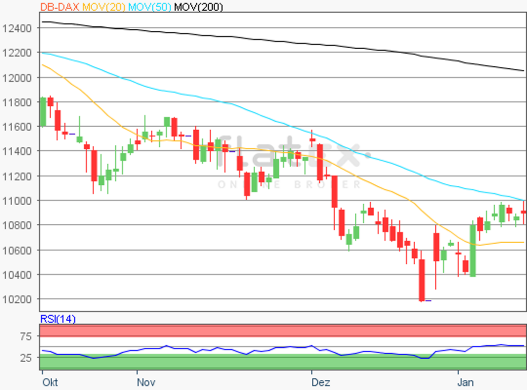 Der Deutsche Aktienindex scheiterte am Dienstag nur knapp an der 11.000-Punkte-Marke und gab einen Großteil der zunächst erzielte Tagesgewinne bis zum Xetra-Handelsschluss wieder ab.