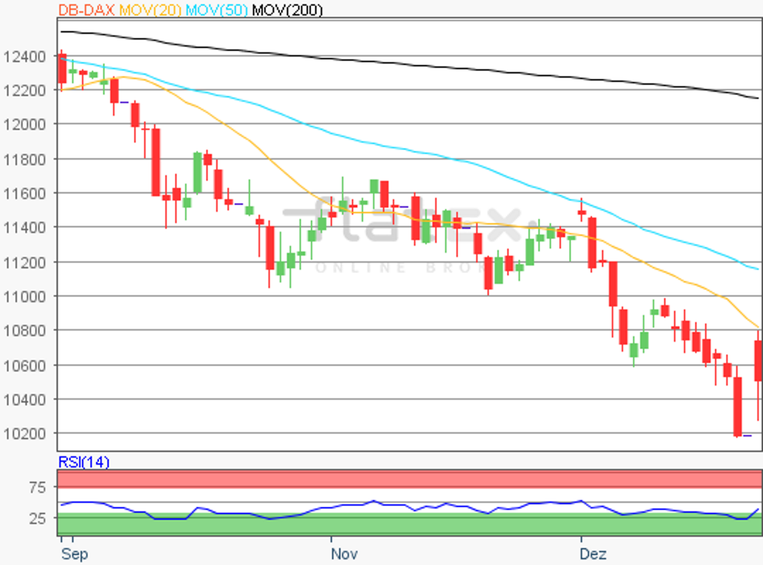 Der Deutsche Aktienindex schließt das Jahr 2018 definitiv mit einem dicken Minus ab. Der heutige Freitag ist der letzte Handelstag des Jahres. Dieses Jahr führen Window-Dressing-Effekte wohl kaum zu einem versöhnlichen Handelsschluss.