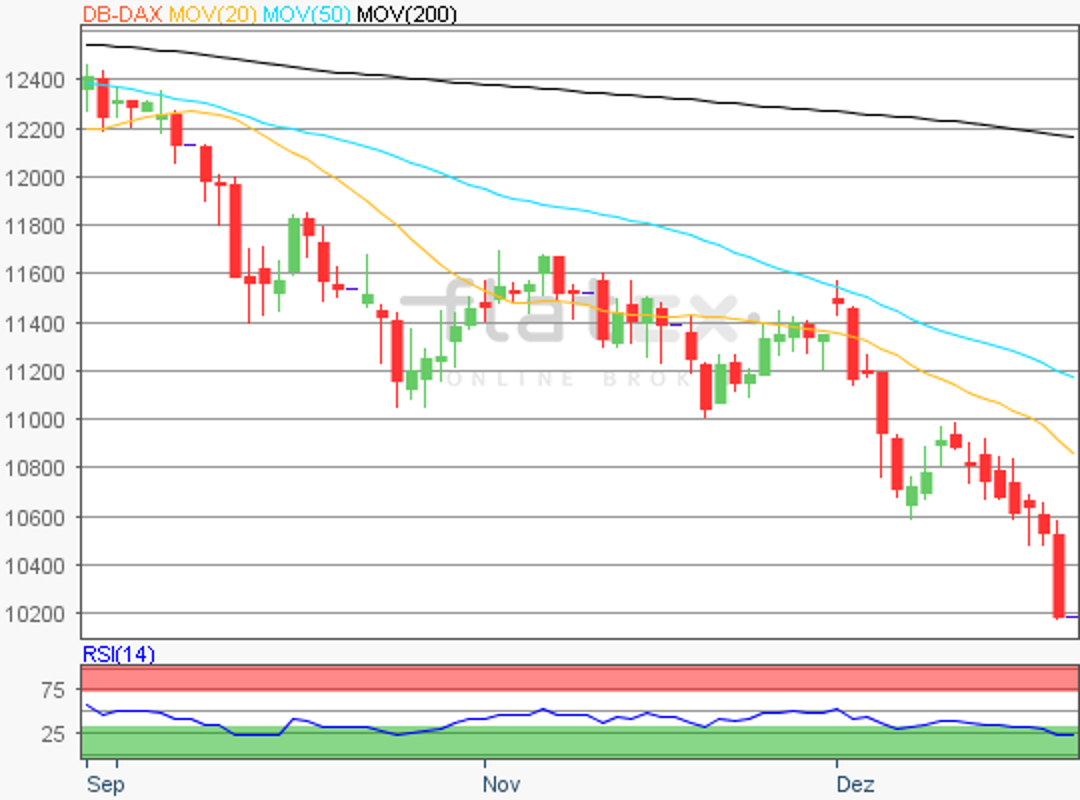 Der Deutsche Aktienindex markierte vor dem Weihnachtsfest mit 10.512,64 Punkten ein neues Jahrestief. Am Freitag, den 21. Dezember zeigte sich der DAX einmal mehr von seiner volatilen Seite, denn an der Terminbörse Eurex verfielen Futures und Optionen (Hexensabbat) auf den DAX.