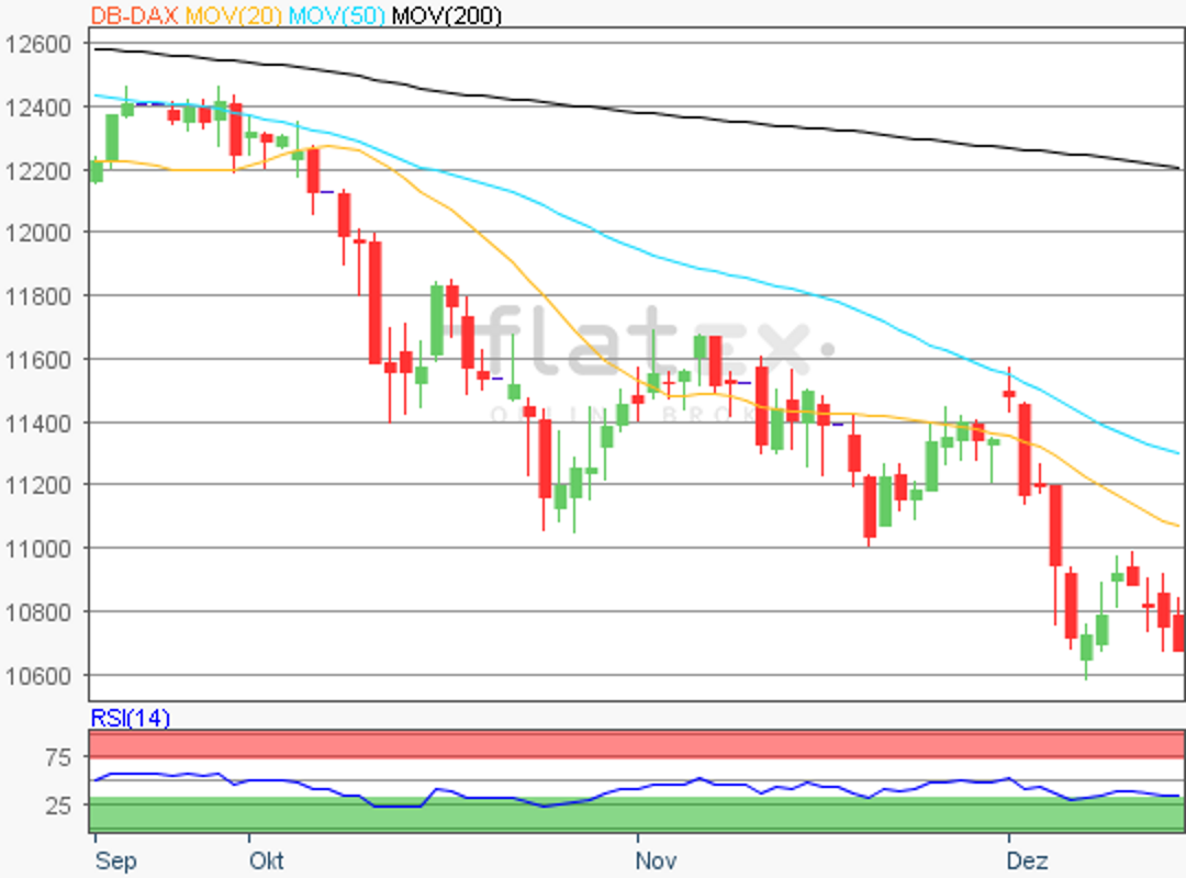 Der Deutsche Aktienindex konnte seinen Fehlstart in die neue Woche auch am Dienstag nicht ausbügeln und verlor um 0,29 Prozent auf 10.740,89 Punkte. Das Handelsvolumen via Xetra und Börse Frankfurt betrug rund 3,79 Prozent.
