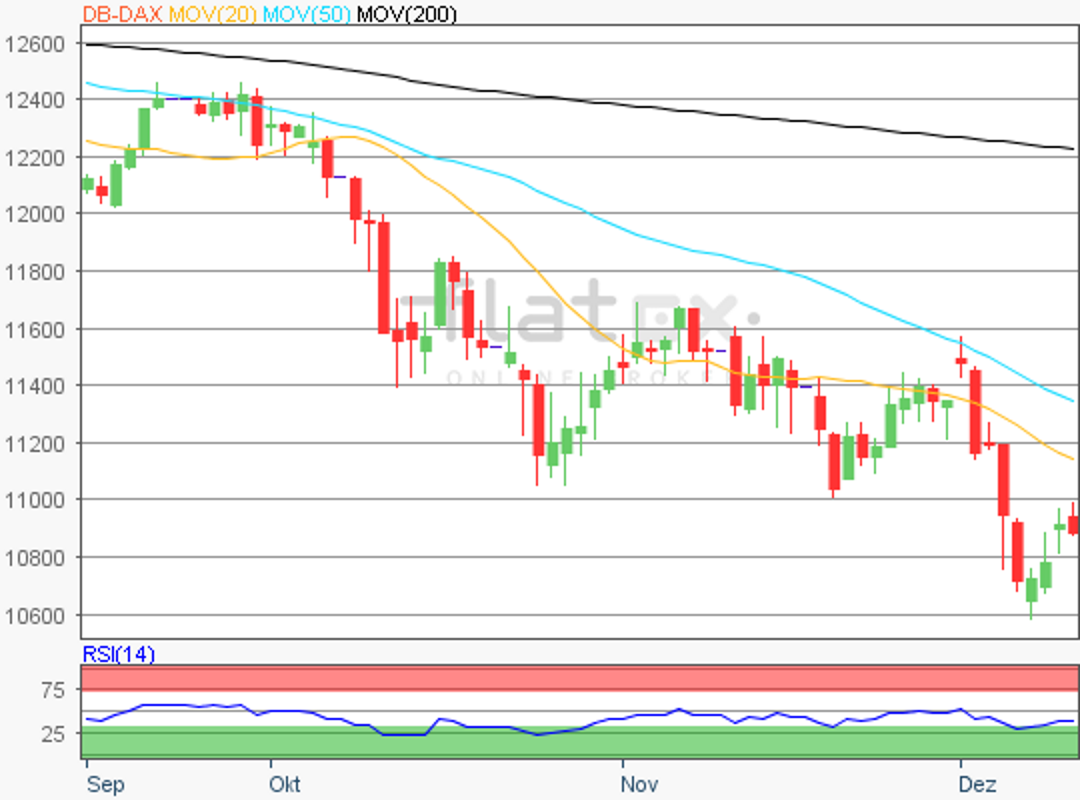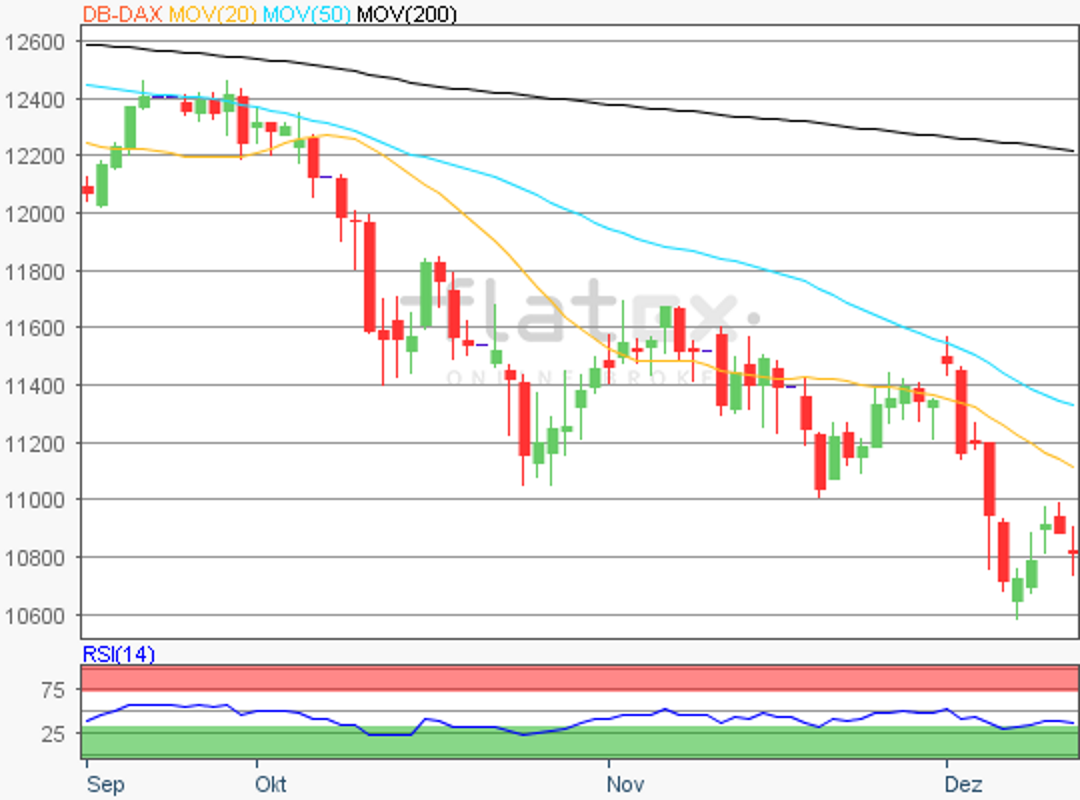 Der Deutsche Aktienindex ging am Freitag mit einem Kursverlust von 0,54 Prozent bei 10.865,77 Punkten via Xetra aus dem Handel. Das Handelsvolumen betrug via Xetra und Börse Frankfurt rund 3,44 Mrd. Euro.