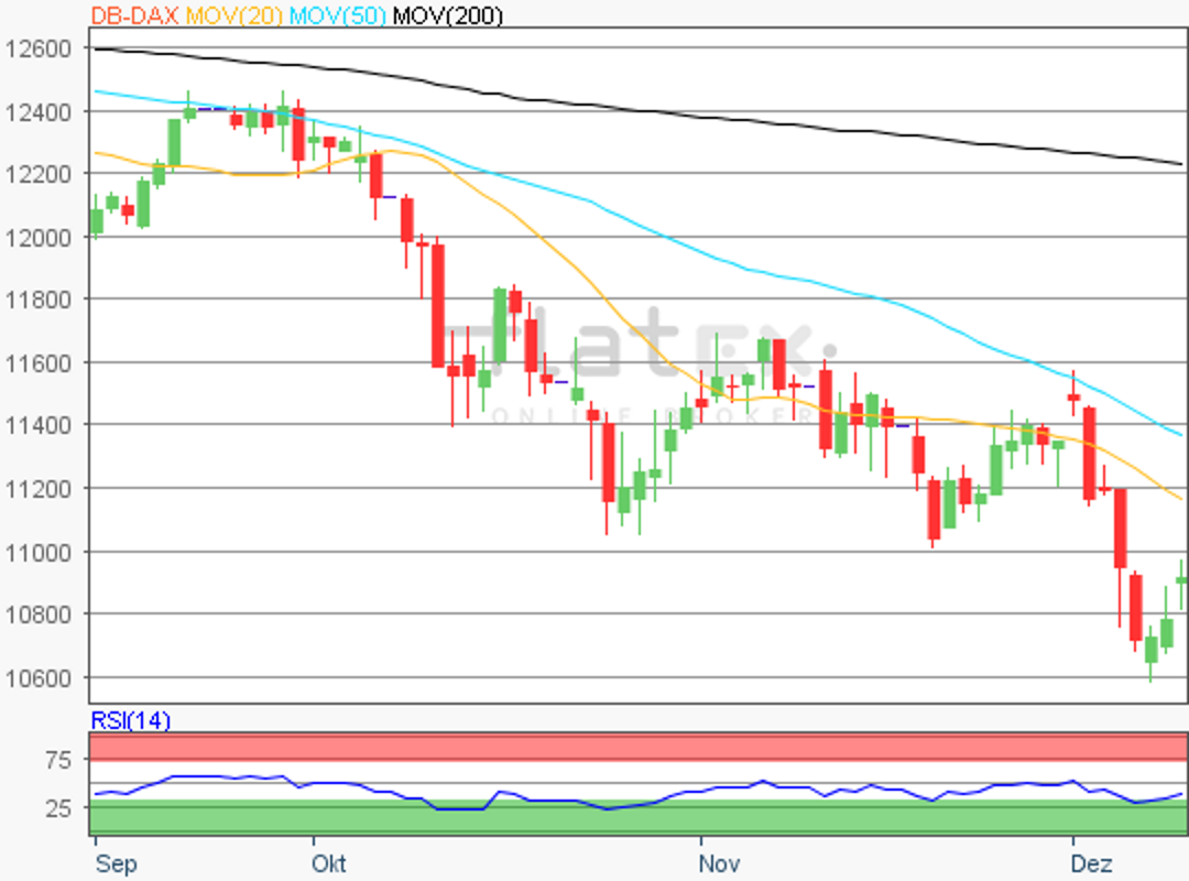 Der Deutsche Aktienindex drehte am Mittwoch nochmals auf und konnte seine Erholung von Dienstag somit fortsetzen. Zum Xetra-Handelsende notierte der DAX mit einem Plus von 1,38 Prozent bei 10.929,43 Punkten.