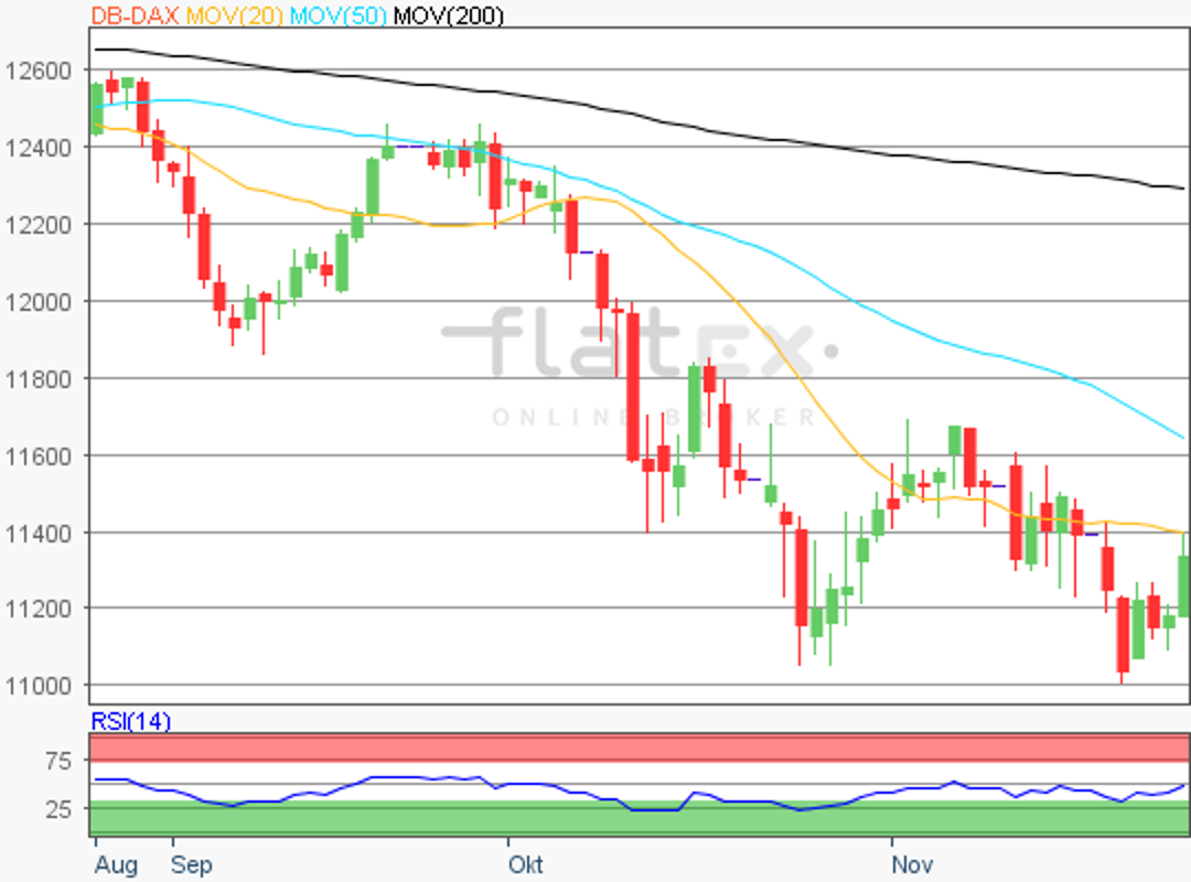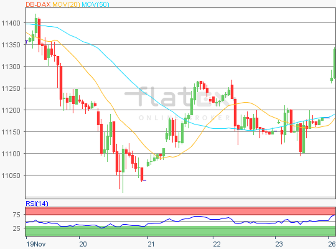Die neue Börsenwoche begann für den Deutschen Aktienindex mit einem kräftigen Kursaufschlag. Der DAX eröffnete am Morgen via Xetra mit einer großen Aufwärtskurslücke. Zum Handelsschluss notierte der deutsche Leitindex mit einem Plus von 1,45 Prozent bei 11.354,72 Punkten.