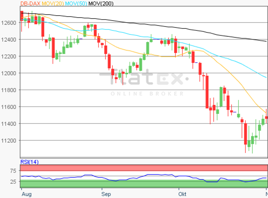 Der Deutsche Aktienindex schraubte sich am Donnerstag am Vormittag noch kräftig empor und bildete bei 11.575,43 Punkten ein Tageshoch aus. Noch vor der Mittagszeit verließen den DAX aber die Kräfte und bis zum Xetra-Handelsschluss gingen wieder über 100 Indexpunkte verloren.