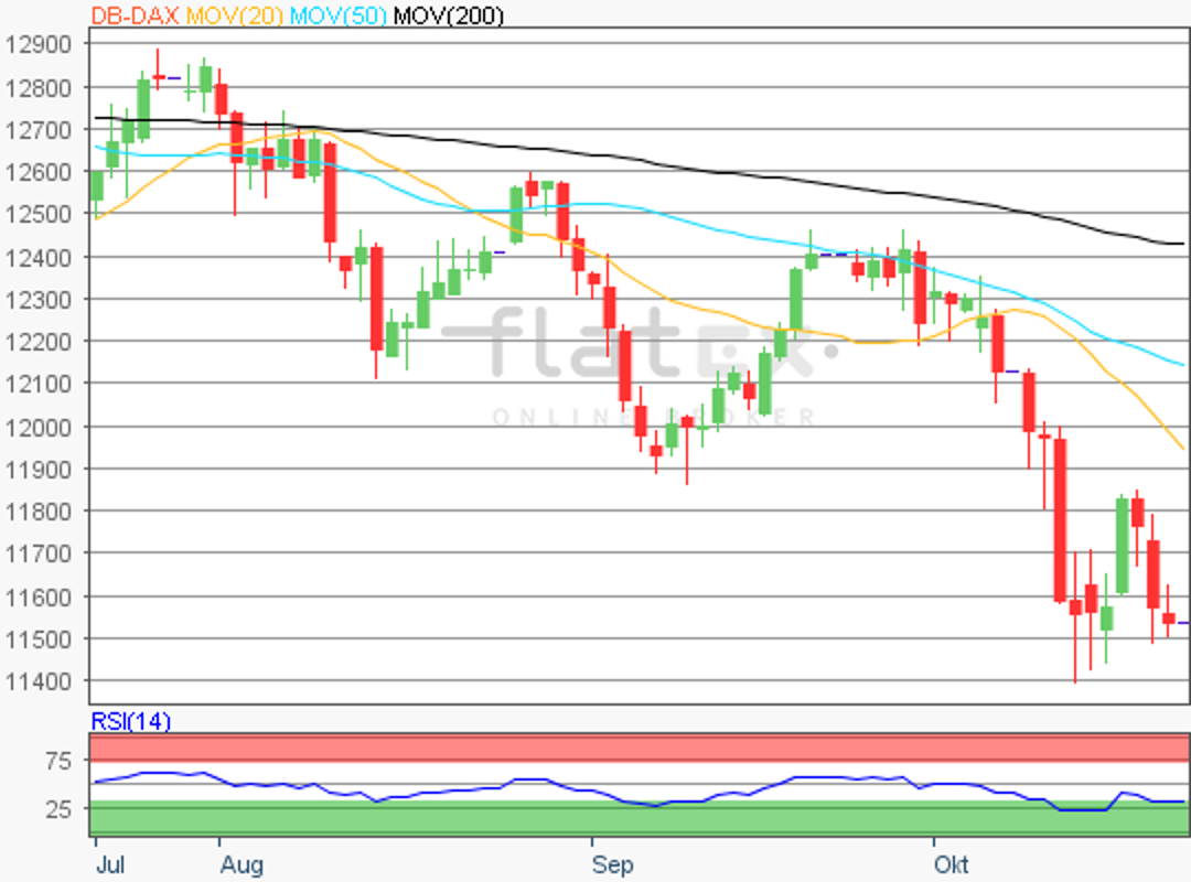 Der Deutsche Aktienindex konnte sich zum Wochenschluss nicht von seinen Tiefs lösen. Zum Jahrestief des 15. Oktober 2018 bei 11.459,08 Punkten ist ohnehin nicht viel Raum. Der kleine Verfallstag an der Terminbörse EUREX trug am Freitag zusätzlich zu erhöhter Volatilität bei.