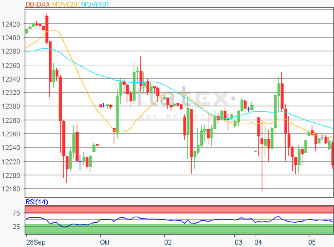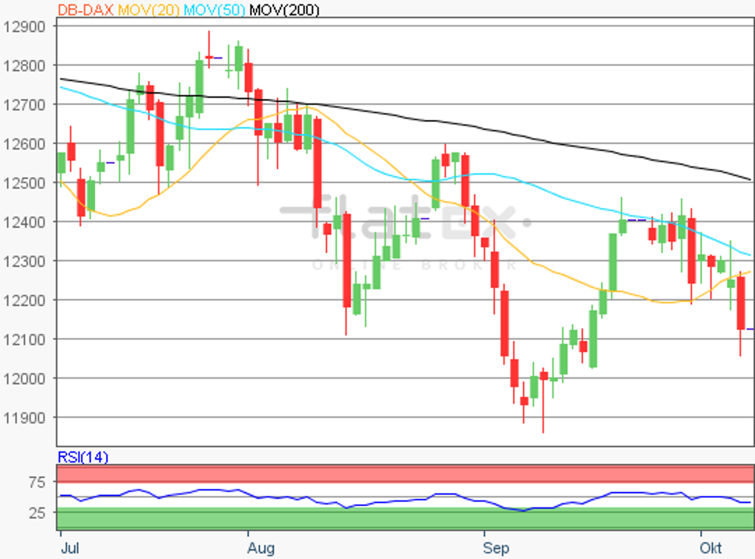 Der Deutsche Aktienindex schloss am Freitag mit weiteren Kursverlusten. Via Xetra notierte der DAX zum Handelsschluss mit einem Minus von 1,08 Prozent bei 12.111,90 Punkten.
