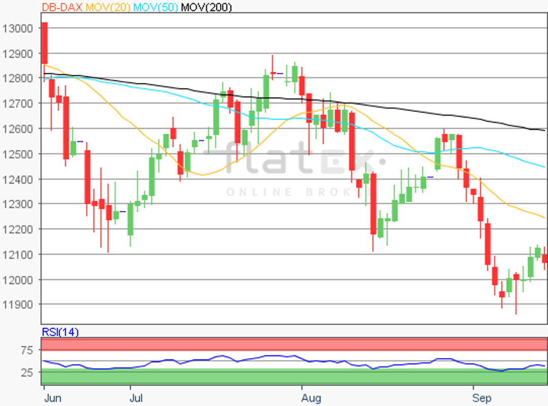 Der Deutsche Aktienindex startete mit Kursverlusten in die neue Handelswoche. Zum Xetra-Schluss notierte der DAX mit einem Minus von 0,23 Prozent und 12.096,41 Punkten.